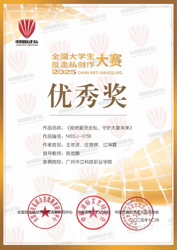 其中獲獎(jiǎng)作品《反走私、護(hù)生態(tài)》由莊景輝、江坤霖 兩位同學(xué)共同創(chuàng)作。作品通過富有沖擊力的視覺語言,深刻揭示走私行為對(duì)生態(tài)環(huán)境造成的危害,傳遞出守護(hù)綠水青山、共建生態(tài)文明的價(jià)值理念。作品《拒絕象牙走私,守護(hù)大象未來》由王歡靈、莊景輝、江坤霖三位同學(xué)聯(lián)合設(shè)計(jì),聚焦象牙非法貿(mào)易問題,以鮮明、生動(dòng)的視覺表達(dá)喚起公眾對(duì)野生動(dòng)物保護(hù)的關(guān)注與行動(dòng)。