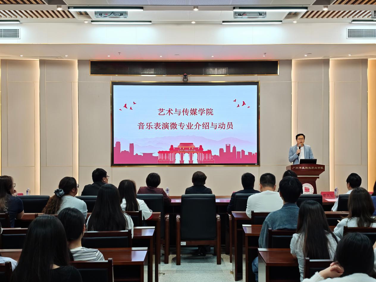 近日,藝術(shù)與傳媒學(xué)院在圖書館104會議室召開音樂表演微專業(yè)介紹與動(dòng)員大會,旨在拓寬學(xué)生藝術(shù)視野、提升綜合素養(yǎng),助力復(fù)合型人才培養(yǎng)。學(xué)校常務(wù)副校長馬俊,人事處處長鐘文浩,教務(wù)處處長孫麗英,藝術(shù)與傳媒學(xué)院院長朱君、黨總支書記兼副院長陳改梅等一同參會。