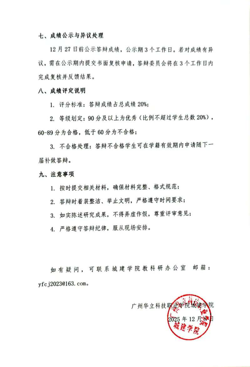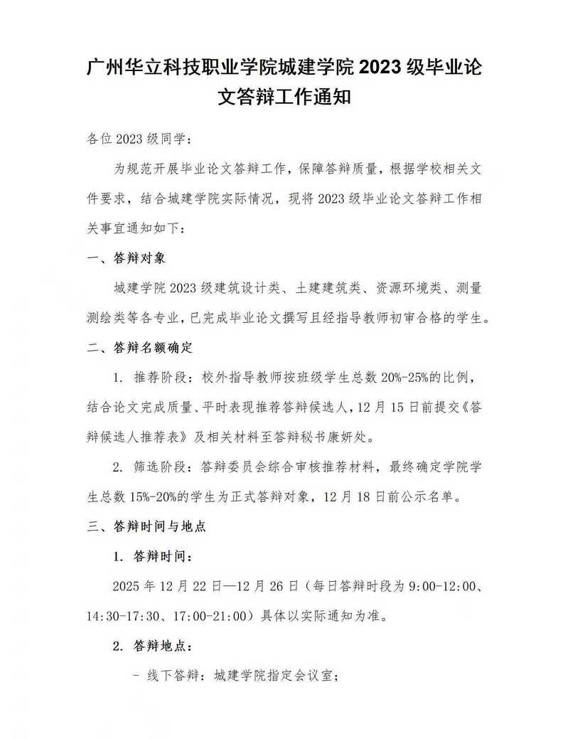廣州華立科技職業(yè)學(xué)院城建學(xué)院 2023 級(jí)畢業(yè)論文答辯工作通知