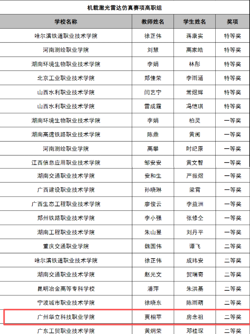 近日,由自然資源部人力資源開發(fā)中心主辦,山西水利職業(yè)技術(shù)學院承辦的“南方測繪杯”第五屆全國大學生測繪地理信息虛擬仿真技能競賽落下帷幕。在匯聚全國近400所院校、近2000名選手的云端競技中,廣州華立科技職業(yè)學院城建學院24級地理班房念祖同學憑借扎實的專業(yè)功底與嫻熟的實操技能,在機載激光雷達仿真賽項高職組中斬獲全國二等獎,充分展現(xiàn)了學院在測繪地理信息領域的教學成效與學子的過硬綜合素質(zhì)。