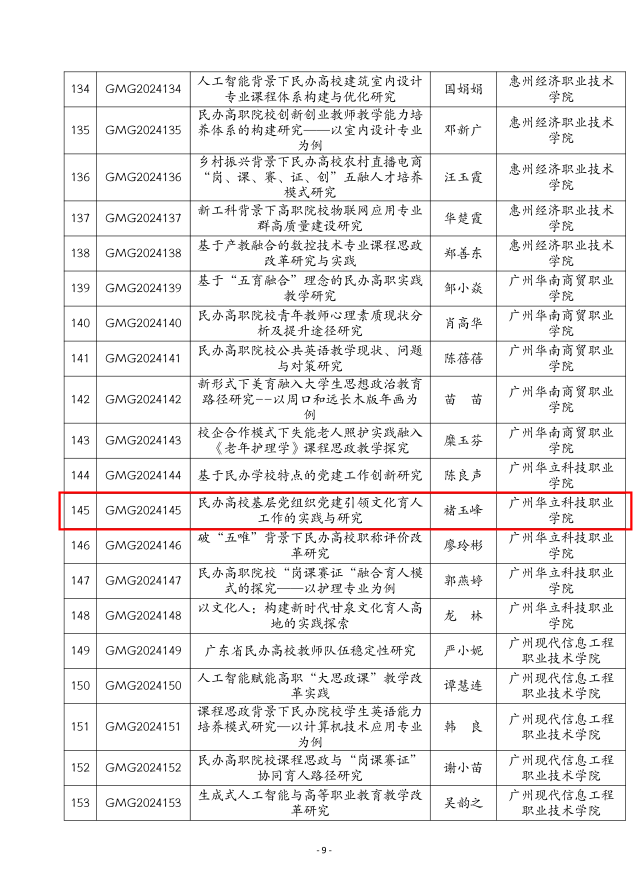 近日,廣東省民辦教育協(xié)會公布了《2024年度民辦高校科研課題立項(xiàng)結(jié)果的通知》,我院申報(bào)的“民辦高?;鶎狱h組織以黨建引領(lǐng)文化育人工作的實(shí)踐與研究”項(xiàng)目成功立項(xiàng)。