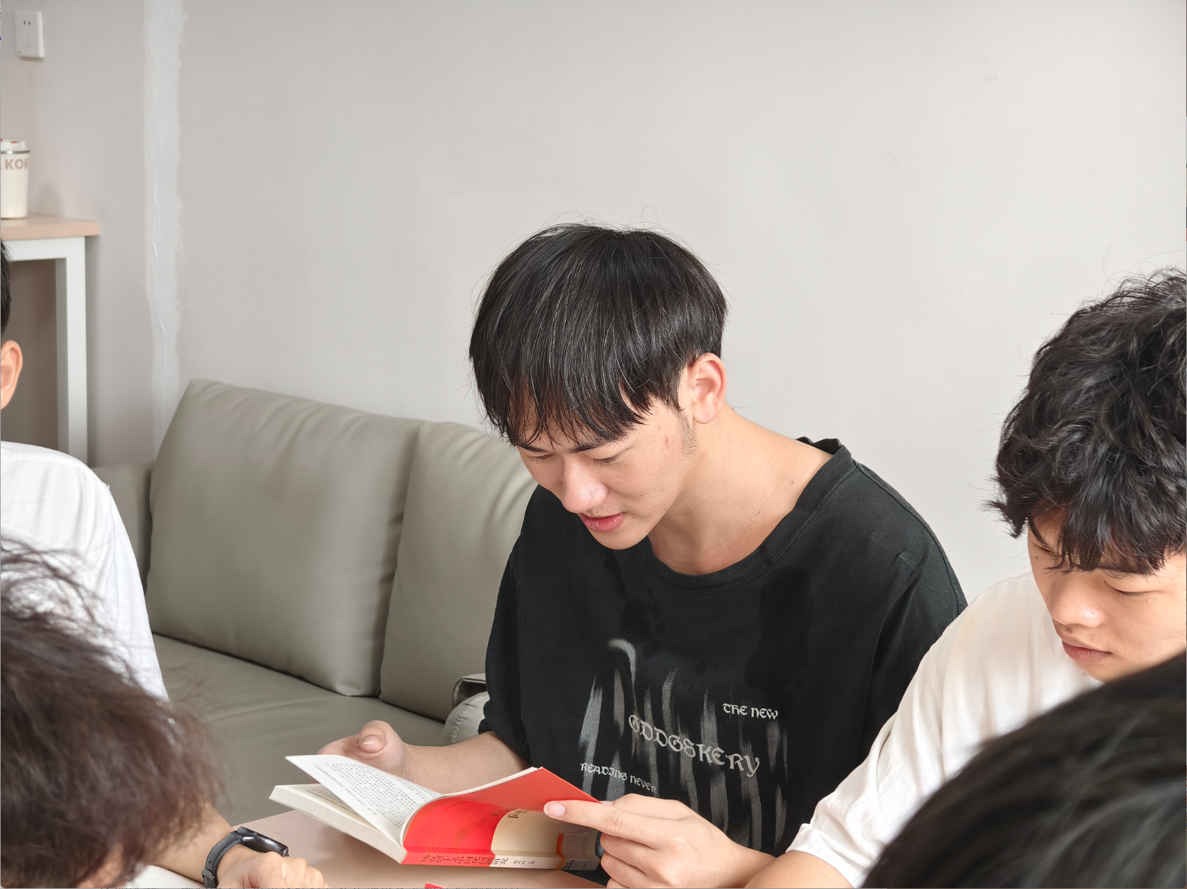 窗外雨聲淅瀝,室內(nèi)書香氤氳。在學(xué)生社區(qū)里一場別開生面的讀書分享會正火熱進(jìn)行,教師黨員吳世濤帶領(lǐng)著五位學(xué)生黨員和積極分子,共同徜徉于知識與信仰的海洋,其中,他作為思想引領(lǐng)者的角色尤為亮眼。