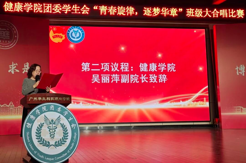 學(xué)院領(lǐng)導(dǎo)高度重視此次活動,健康學(xué)院副院長吳麗萍老師,學(xué)管辦公室副主任唐青老師,健康學(xué)院團(tuán)委書記鄭幫輝老師及全體輔導(dǎo)員老師出席并擔(dān)任評委。吳麗萍副院長在致辭中強(qiáng)調(diào):大合唱不僅是一項文藝活動,更是一堂關(guān)于傾聽、信任與協(xié)作的"團(tuán)隊必修課",希望同學(xué)們能在過程中完成從"""我們"的集體成長。