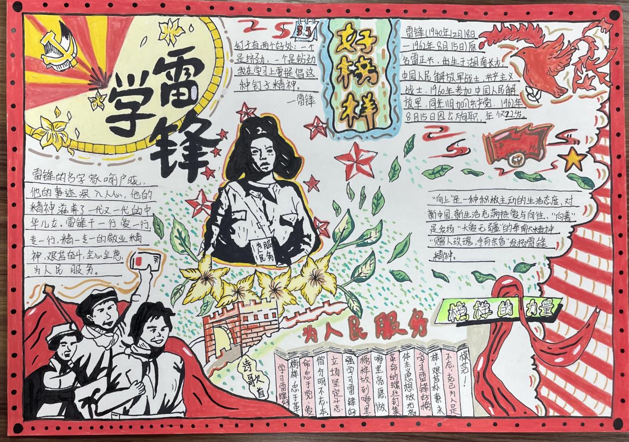活動(dòng)開展期間,動(dòng)物醫(yī)學(xué)院健康學(xué)院兩院學(xué)子積極響應(yīng)、踴躍參與,在創(chuàng)作中融入黨史知識(shí)、雷鋒事跡與醫(yī)者擔(dān)當(dāng),一幅幅主題鮮明、設(shè)計(jì)新穎、內(nèi)容豐富的手抄報(bào)作品陸續(xù)涌現(xiàn)。同學(xué)們用細(xì)膩的筆觸、鮮明的色彩、真摯的文字,展現(xiàn)出對(duì)雷鋒精神的深刻理解,以及新時(shí)代青年學(xué)子的家國(guó)情懷與責(zé)任擔(dān)當(dāng)。