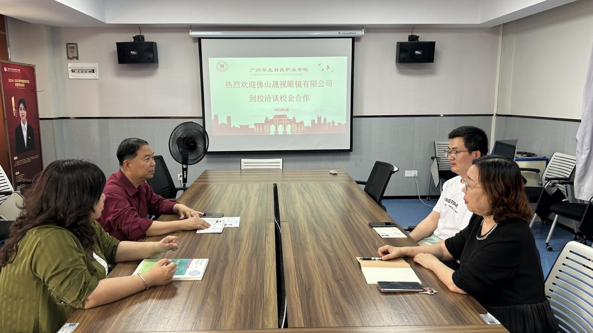 為深入推進(jìn)產(chǎn)教融合、校企協(xié)同育人,精準(zhǔn)對(duì)接眼視光行業(yè)人才需求,2026年3月19日下午,佛山晟視眼鏡有限公司總經(jīng)理秦松波蒞臨廣州華立科技職業(yè)學(xué)院健康學(xué)院,開(kāi)展校企合作專題洽談。健康學(xué)院雷毅雄院長(zhǎng)、吳麗萍副院長(zhǎng)、教學(xué)主任曾藝瑤、就業(yè)主任梁瑞云等相關(guān)領(lǐng)導(dǎo)及專業(yè)負(fù)責(zé)人出席本次座談會(huì),雙方就人才培養(yǎng)、實(shí)習(xí)就業(yè)、實(shí)訓(xùn)共建等事宜展開(kāi)深度交流,共商合作發(fā)展大計(jì)。