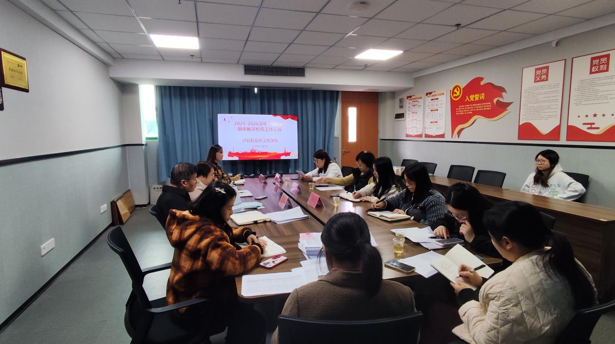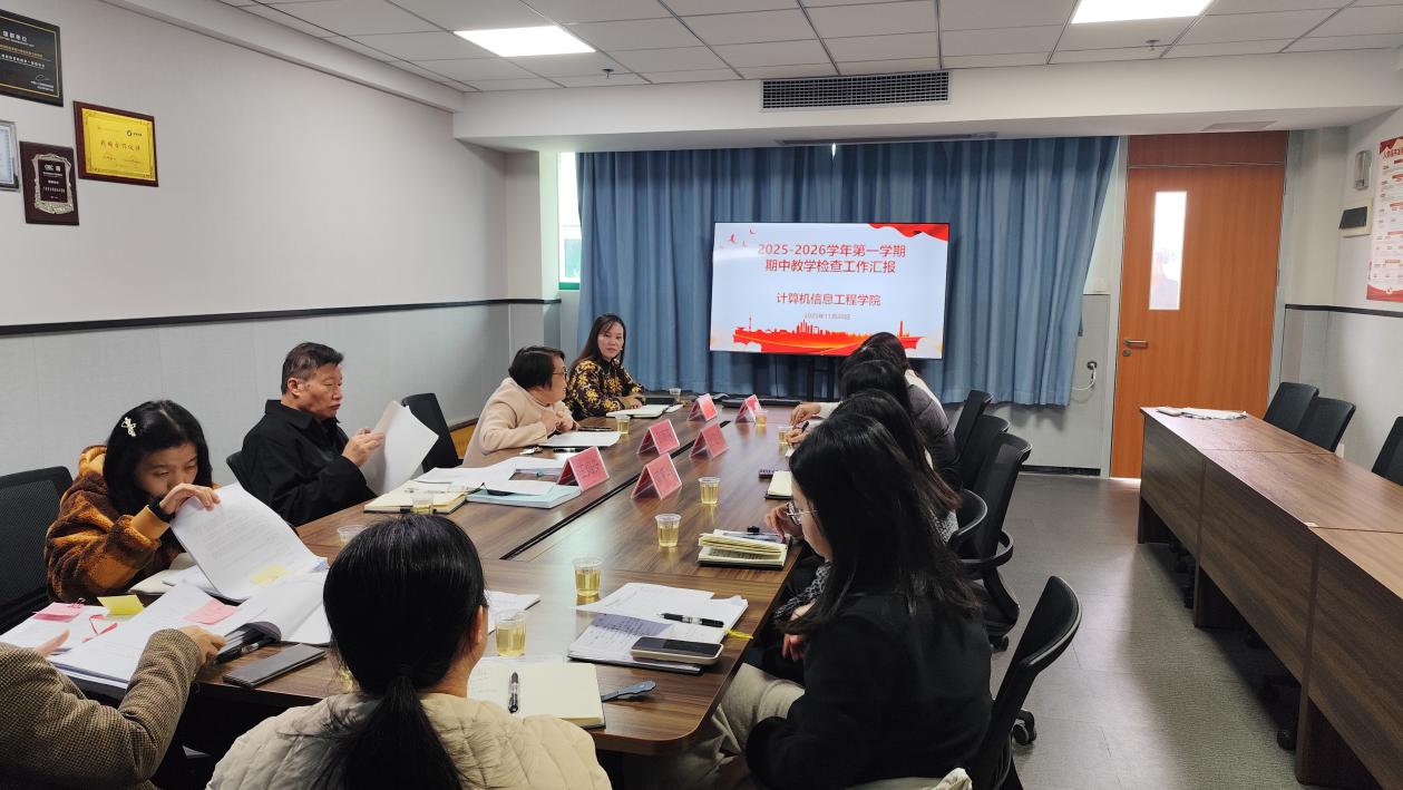 為全面檢驗(yàn)本學(xué)期教學(xué)工作成效,精準(zhǔn)把握教學(xué)運(yùn)行動(dòng)態(tài),持續(xù)提升人才培養(yǎng)質(zhì)量,2025年11月20日,計(jì)算機(jī)信息工程學(xué)院在學(xué)院會(huì)議室召開期中教學(xué)檢查工作會(huì)議。教務(wù)處處長(zhǎng)孫麗英、督導(dǎo)辦公室主任王焰安及教務(wù)處相關(guān)人員蒞臨指導(dǎo),學(xué)院院長(zhǎng)王建華、教學(xué)主任王蘭豐、教務(wù)員黃斯華參會(huì)。