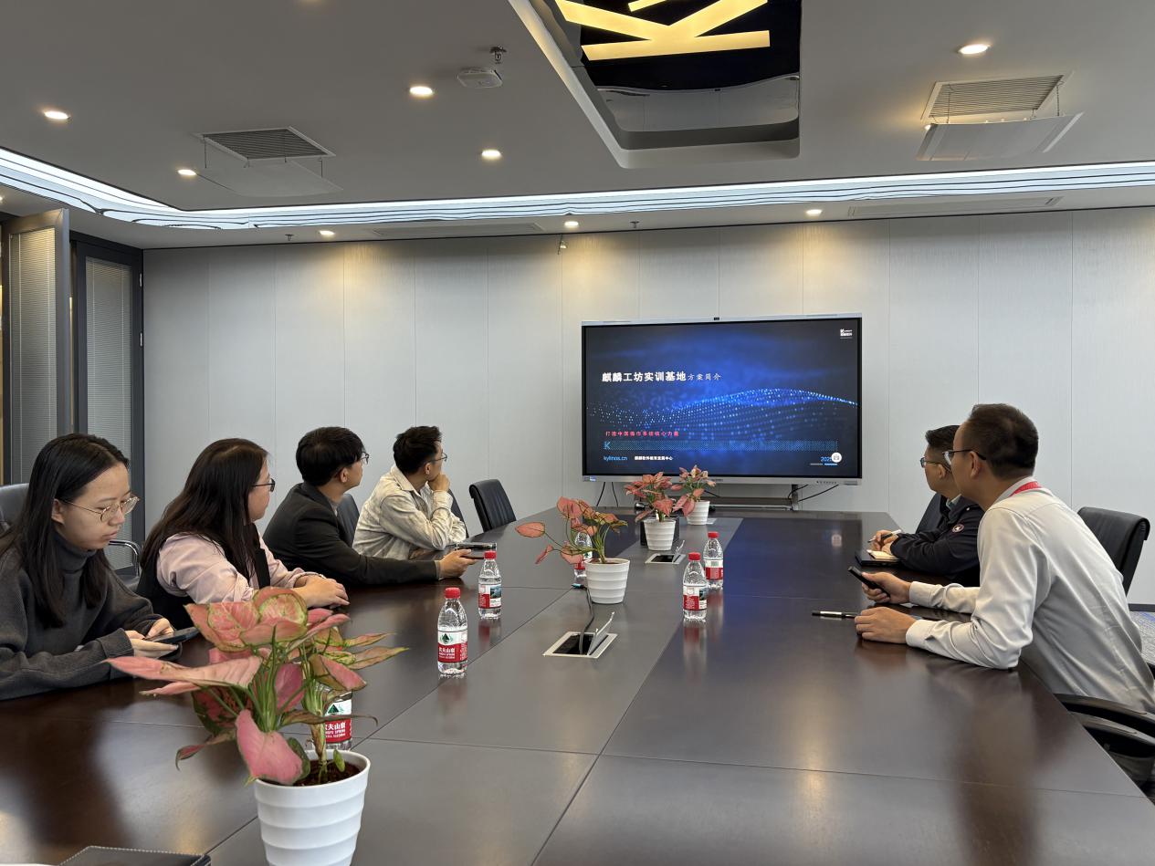 參觀后,雙方進行座談交流。企業(yè)負(fù)責(zé)人介紹了麒麟軟件在信創(chuàng)產(chǎn)業(yè)的布局及人才需求,表示期待與學(xué)院在實習(xí)就業(yè)、項目研發(fā)等方面深化合作。閔小翠副院長表示,學(xué)院始終重視產(chǎn)教融合,希望通過此次交流,推動人才培養(yǎng)與產(chǎn)業(yè)需求精準(zhǔn)對接,為企業(yè)輸送更多高素