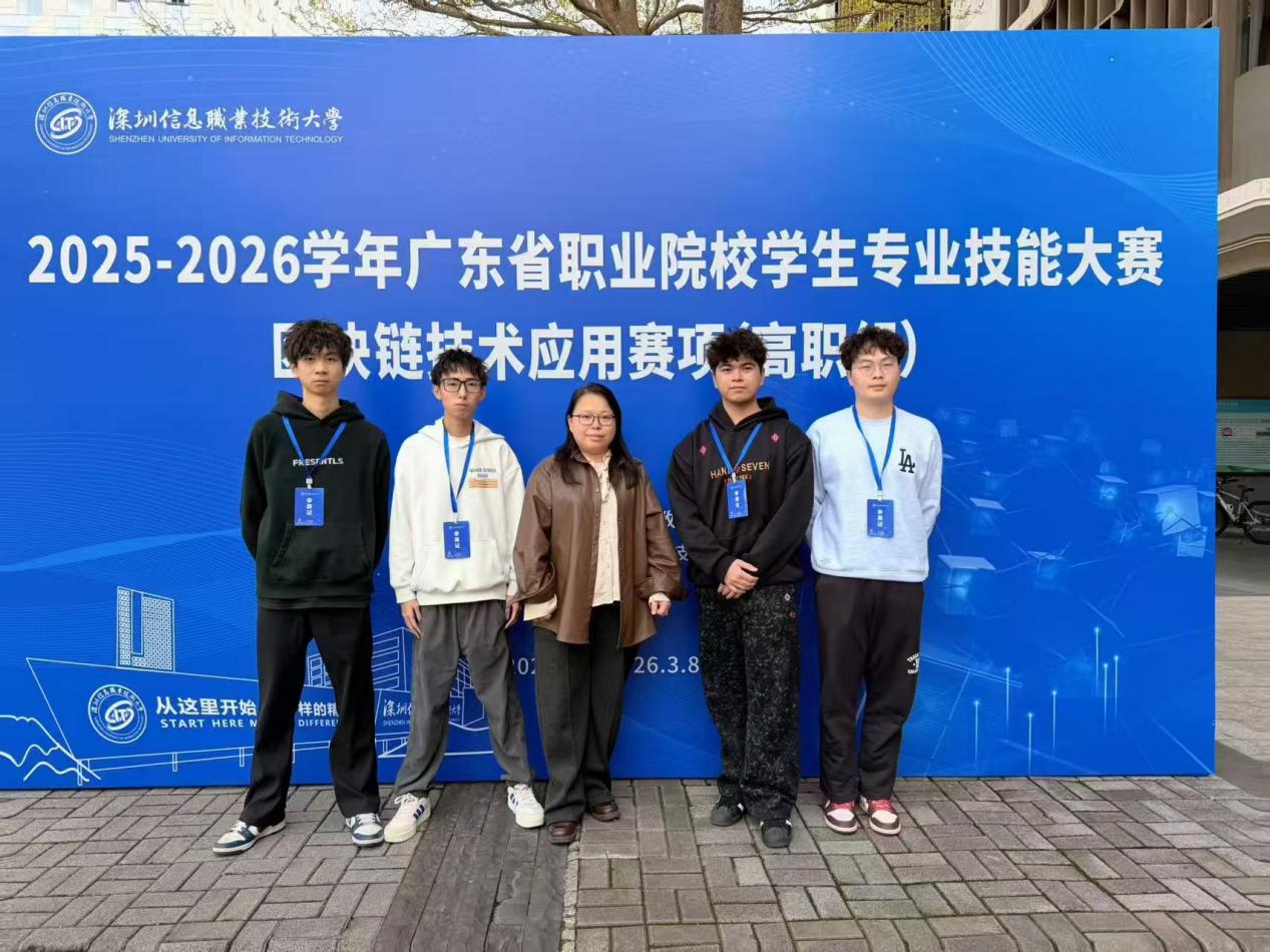 近日,2025—2026年廣東省職業(yè)院校技能大賽“區(qū)塊鏈技術(shù)應(yīng)用”賽項(xiàng)在深圳信息職業(yè)技術(shù)大學(xué)落幕。來自全省53所職業(yè)院校的代表隊(duì)同臺競技。我院蔡建州、歐建豪、吳祿嘉、黎明濤四名學(xué)生在閔小翠、王建華兩位老師的指導(dǎo)下,最終榮獲三等獎(jiǎng)。
