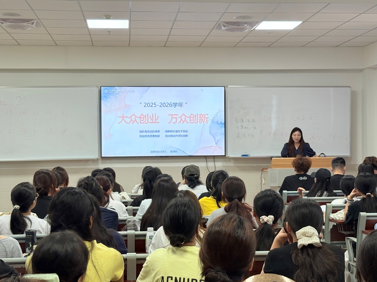 新的學(xué)期,新的起點(diǎn),為幫助25級(jí)新生們及時(shí)了解學(xué)校創(chuàng)新創(chuàng)業(yè)相關(guān)資訊,激發(fā)新生創(chuàng)新創(chuàng)業(yè)的熱情,培養(yǎng)新生的創(chuàng)新意識(shí)和創(chuàng)新創(chuàng)業(yè)能力,播撒創(chuàng)新創(chuàng)業(yè)的種子,助力新生系好創(chuàng)新創(chuàng)業(yè)的第一粒扣子,發(fā)揮以賽促學(xué)的示范和引領(lǐng)作用,9月5日,我校經(jīng)管和生活學(xué)院在4教多媒體課室舉辦了創(chuàng)新創(chuàng)業(yè)入學(xué)教育講座,學(xué)院25級(jí)全體新生參加活動(dòng)。