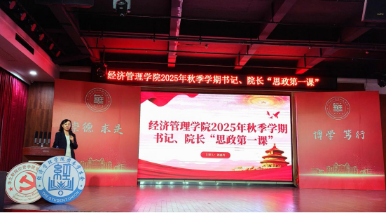 9月2日上午,經(jīng)濟(jì)管理學(xué)院在圖書館8樓舉行2025年秋季學(xué)期書記、院長“思政第一課”。學(xué)院黨總支書記、院長劉惠玲同志以“銘記偉大勝利,汲取奮進(jìn)力量”為主題,通過回溯歷史、解讀精神、展望未來三大篇章,為25級全體新生帶來一堂立體生動的專題黨課。黨課由黨總支專職副書記謝曉慧同志主持,學(xué)院全體輔導(dǎo)員、24級學(xué)生代表及25級全體新生參加學(xué)習(xí)。