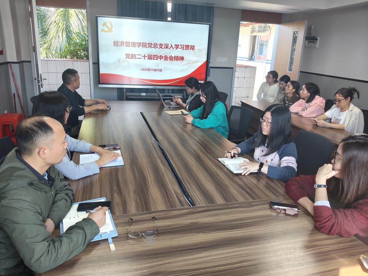 為深入學(xué)習(xí)貫徹黨的二十屆四中全會(huì)精神,推動(dòng)學(xué)院高質(zhì)量發(fā)展,11月24日,經(jīng)濟(jì)管理學(xué)院黨總支召開專題學(xué)習(xí)會(huì),黨總支書記、副書記分別作主題宣講,全體教師黨員參會(huì)。