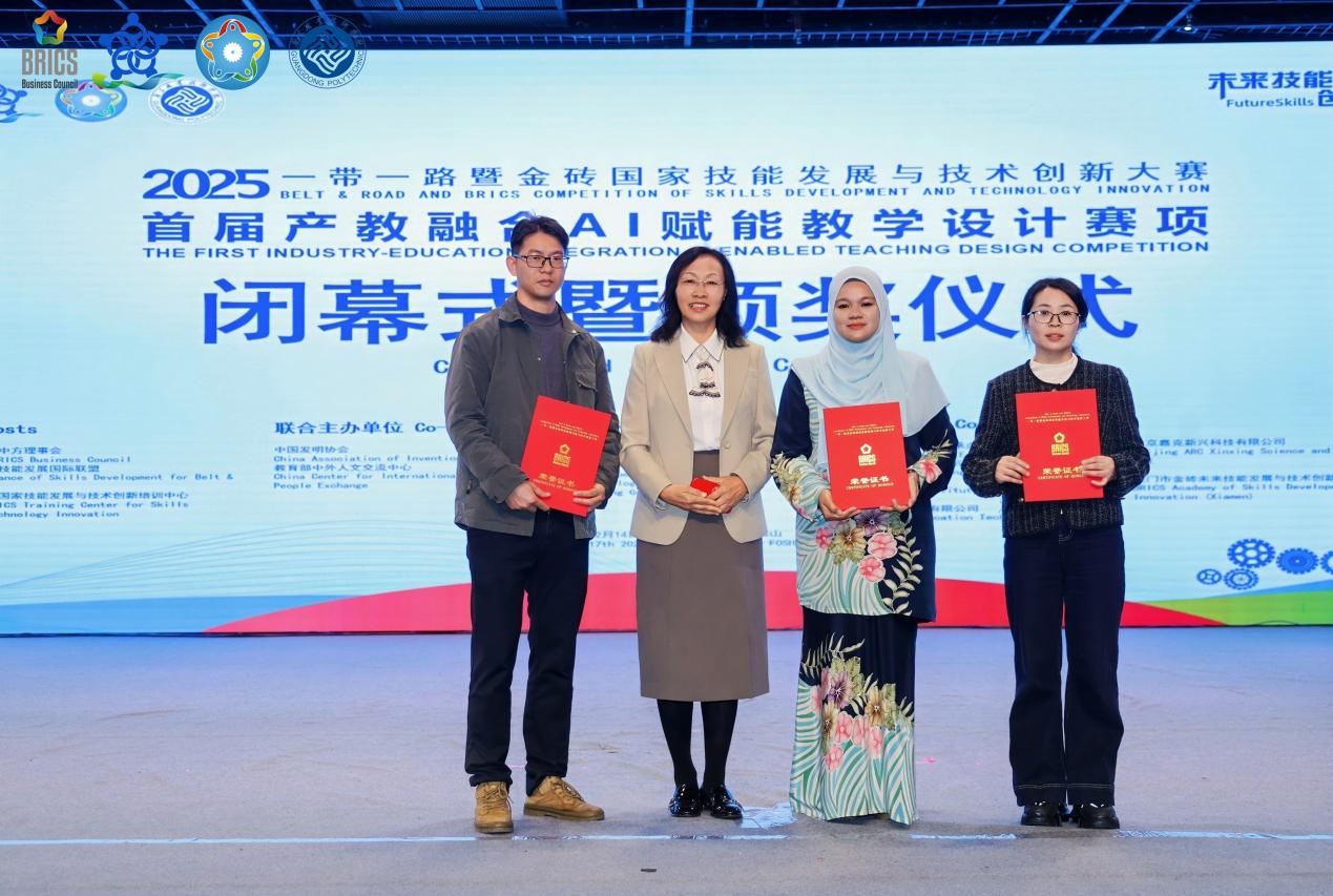 12月14日至17日,2025年“一帶一路”暨金磚國家技能發(fā)展與技術創(chuàng)新大賽首屆產(chǎn)教融合AI賦能教學設計賽項決賽在廣東職業(yè)技術學院高明校區(qū)圓滿舉行。我校經(jīng)濟管理學院4支教師參賽隊伍憑借扎實的教學功底與創(chuàng)新的產(chǎn)教融合AI賦能教學設計理念斬獲二等獎1項(楊素芹與馬來西亞美里茂理工學院ROSFASHIHAH BINTI ROSLAN)、三等獎2項(梁慧貞與王赟、李萍與何玉冰)及優(yōu)勝獎1項(何勝華與鄧一平);同時,學校因組織工作周密、支持保障有力,被大賽組委會授予“優(yōu)秀組織獎”,并成為“全球南方AI工坊”首批創(chuàng)始成員單位之一,彰顯了我校在產(chǎn)教融合與國際教育合作領域的強勁實力。