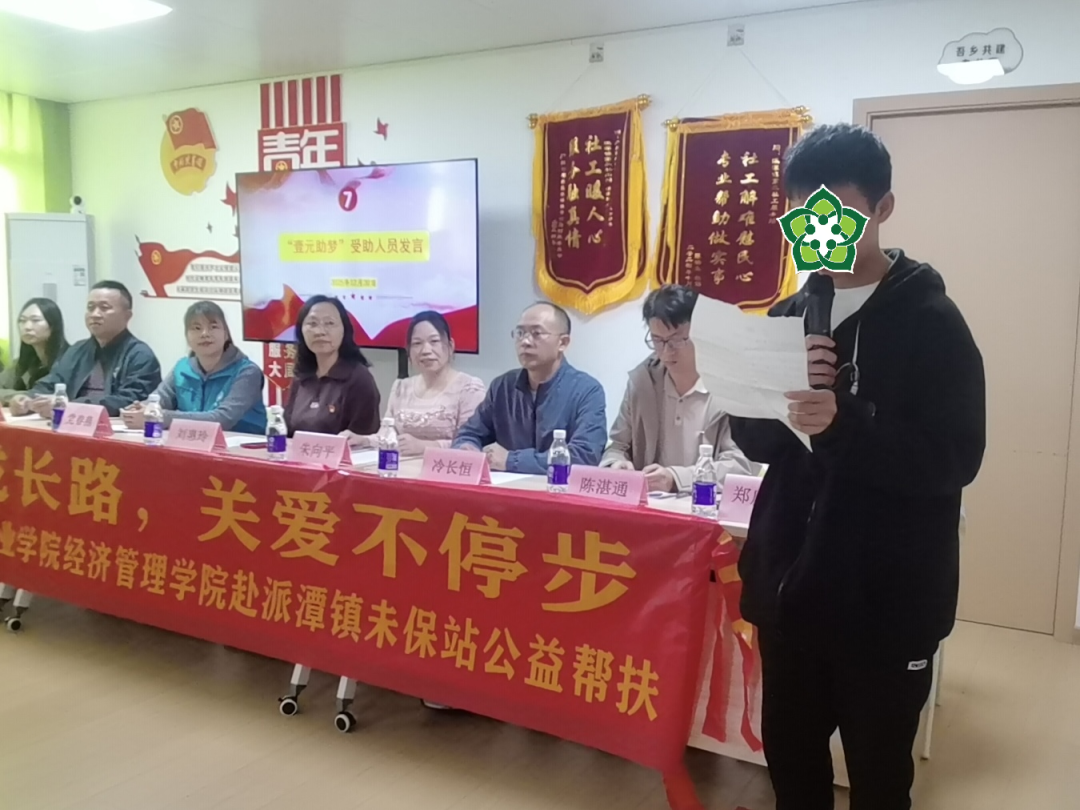 活動(dòng)伊始,派潭鎮(zhèn)第二社工服務(wù)站主任黨春燕發(fā)表致辭。她的話語滿含對(duì)困境兒童的深切關(guān)愛與殷切鼓勵(lì),字里行間流露著對(duì)經(jīng)濟(jì)管理學(xué)院善舉的誠摯謝意,讓現(xiàn)場(chǎng)暖意融融。經(jīng)濟(jì)管理學(xué)院副院長朱向平表示,學(xué)院始終將社會(huì)公益事業(yè)放在心上,格外關(guān)注困境兒童的成長困境,希望通過此次捐贈(zèng),為孩子們帶去實(shí)實(shí)在在的幫助,更能點(diǎn)燃他們直面困難的勇氣,筑牢逐夢(mèng)前行的信心。