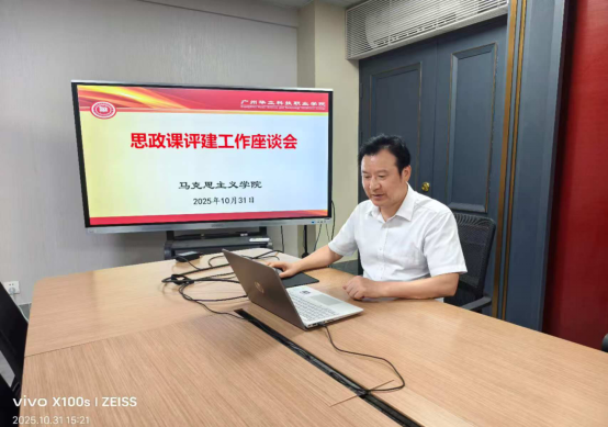會(huì)議伊始,廖良初院長首先帶領(lǐng)大家學(xué)習(xí)了教育部辦公廳《關(guān)于開展2025-2026學(xué)年高校思政課課堂教學(xué)提升行動(dòng)的通知》、《廣州華立科技職業(yè)學(xué)院教學(xué)事故認(rèn)定處理辦法》等文件精神,介紹了召開本次座談會(huì)的背景與目的。他指出,思政課是落實(shí)立德樹人根本任務(wù)的關(guān)鍵課程,在當(dāng)前新形勢(shì)新要求下,對(duì)標(biāo)《馬克思主義學(xué)院建設(shè)標(biāo)準(zhǔn)(2023年版)》,落實(shí)教育部“思政課課堂教學(xué)提升行動(dòng)”精神,扎實(shí)推進(jìn)思政課評(píng)建工作,打造思政“金課”,推動(dòng)馬克思主義學(xué)院內(nèi)涵式發(fā)展。他希望通過此次座談,能夠集思廣益,明確方向,凝聚共識(shí),找準(zhǔn)問題,解決問題,推動(dòng)發(fā)展。