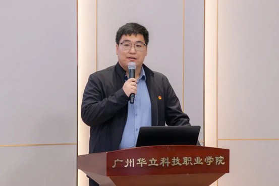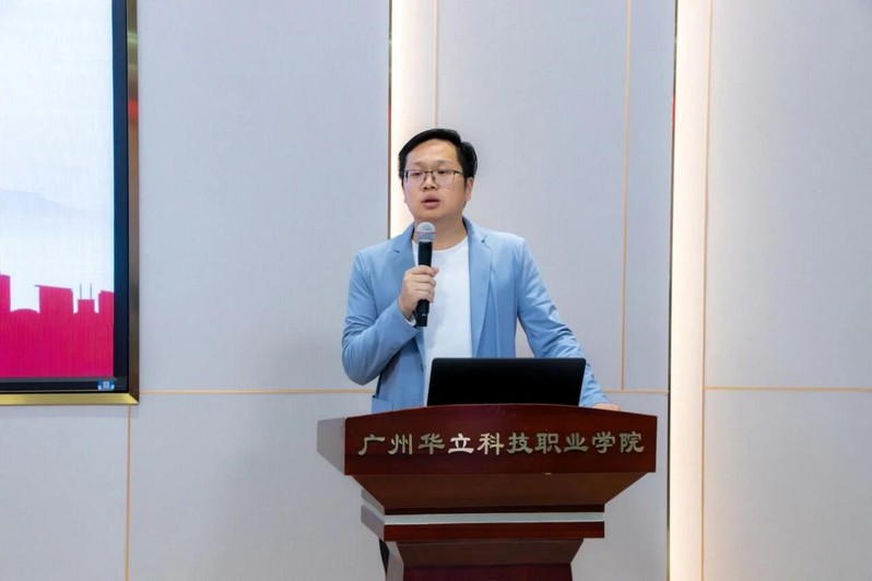 藝術(shù)與傳媒學院院長朱君代表指導單位發(fā)言。他全面介紹了廣州華立科技職業(yè)學院音樂表演微專業(yè)課程暨相關(guān)選修課的設置情況,著重介紹了陳志偉、周婧兩位指導老師的專業(yè)背景與豐富教學經(jīng)驗,并對兩大藝術(shù)團體后續(xù)的核心工作進行了部署,涵蓋日常訓練、專項集訓、展演賽事等,為團體規(guī)范化、高質(zhì)量發(fā)展明確了路徑,同時也表達了指導單位將全程護航團隊建設、助力師生藝術(shù)素養(yǎng)提升的堅定決心。