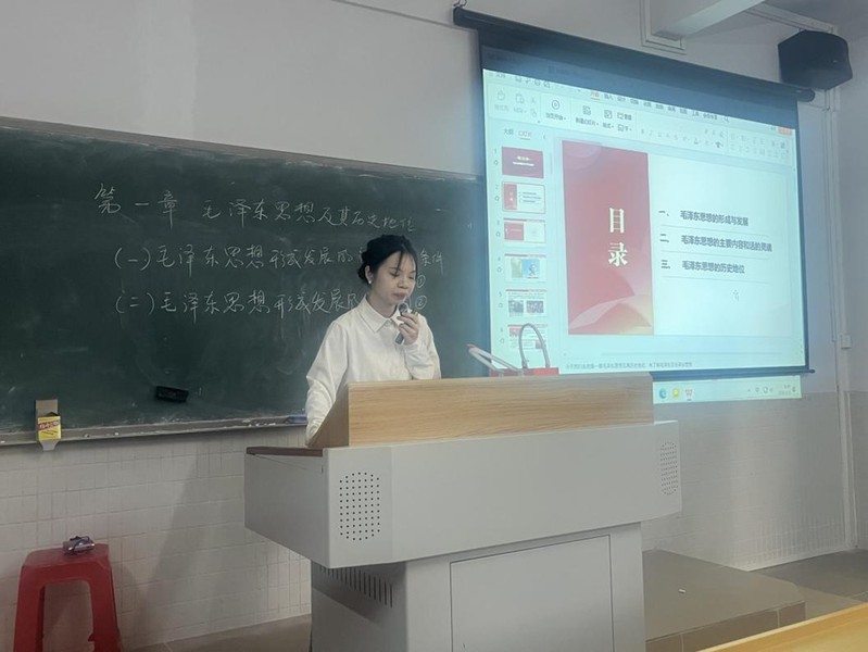 本次活動分為課堂聽課與集中評課兩個環(huán)節(jié)。聽課環(huán)節(jié)中,黃海燕老師以毛澤東思想及其歷史地位為教學(xué)主題,系統(tǒng)講授毛澤東思想的形成與發(fā)展、主要內(nèi)容、活的靈魂等核心知識。授課過程中,黃老師精神飽滿、邏輯嚴(yán)謹(jǐn),熟練運用信息化教學(xué)手段,課堂設(shè)計層次清晰、互動充分,有效調(diào)動學(xué)生學(xué)習(xí)積極性,展現(xiàn)出扎實的教學(xué)能力與良好的課堂風(fēng)貌。