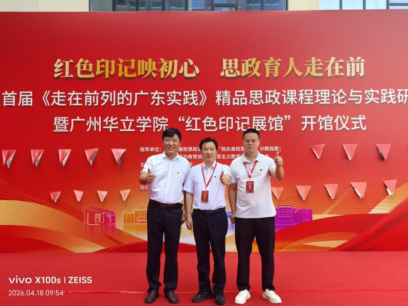 4月18日,由廣東省高校思政課教指委 “民辦高校思政課” 分教指委、廣東省民辦教育協(xié)會馬克思主義教學(xué)與研究委員會指導(dǎo),廣州華立學(xué)院主辦的首屆《走在前列的廣東實踐》精品思政課程理論與實踐研討會暨廣州華立學(xué)院“紅色印記展館”開館儀式在廣州華立學(xué)院江門校區(qū)隆重舉行。廣東省民辦教育協(xié)會會長趙康、廣東財經(jīng)大學(xué)、廣東工業(yè)大學(xué)、珠??萍紝W(xué)院、廣州商學(xué)院、廣州城市理工學(xué)院、廣州工商學(xué)院等30多所民辦高校的黨委書記、馬克思主義學(xué)院院長出席。我院教授廖良初、教師宋凱華應(yīng)邀參會。