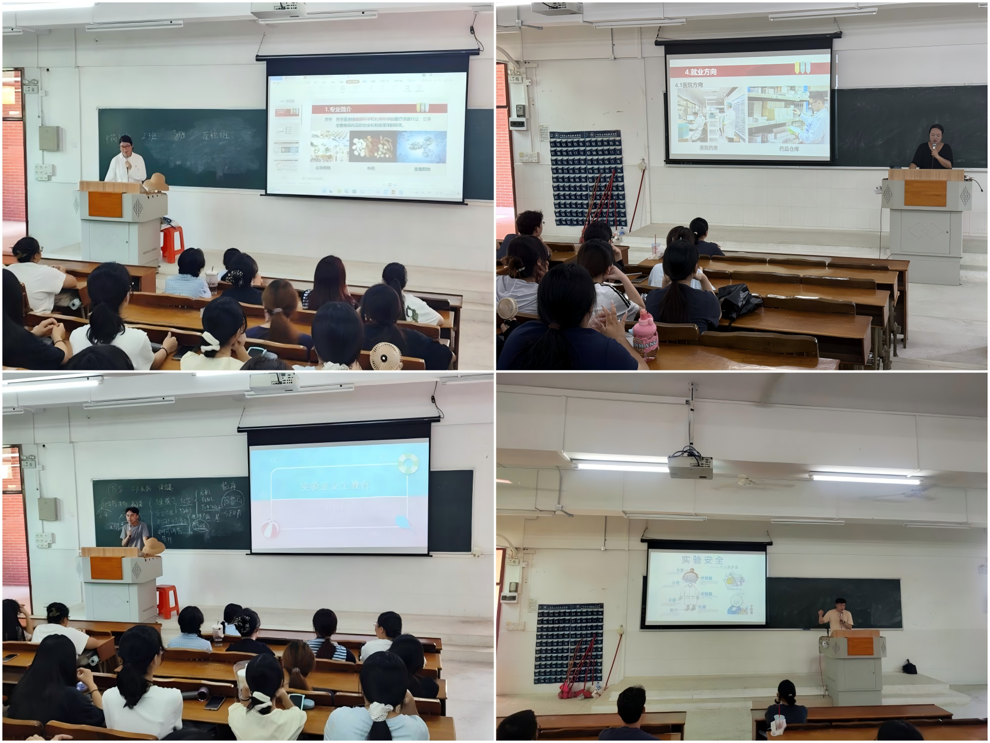 藥學(xué)專業(yè):9月3日,藥學(xué)專業(yè)新生教育座談會隆重召開。中醫(yī)藥學(xué)院專職教師以及2025級藥學(xué)專業(yè)全體150名新生共同參會。教師們系統(tǒng)介紹了藥學(xué)專業(yè)核心課程體系,包括藥物化學(xué)、藥理學(xué)、藥劑學(xué)、藥物分析等主干學(xué)科,詳細(xì)說明了教學(xué)資源、實驗室配置及校企合作項目。實訓(xùn)室老師重點講解了化學(xué)品使用規(guī)范、儀器操作流程及應(yīng)急處理措施,強調(diào)實訓(xùn)安全的重要性。座談會內(nèi)容充實、氣氛熱烈,為新生明確了學(xué)習(xí)目標(biāo)和職業(yè)規(guī)劃方向。
