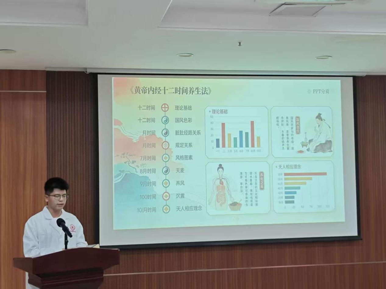 歐洪城同學以《黃帝內經十二時辰養(yǎng)生法》我們明白中醫(yī)不僅能治病救人,還能指導我們的日常生活。