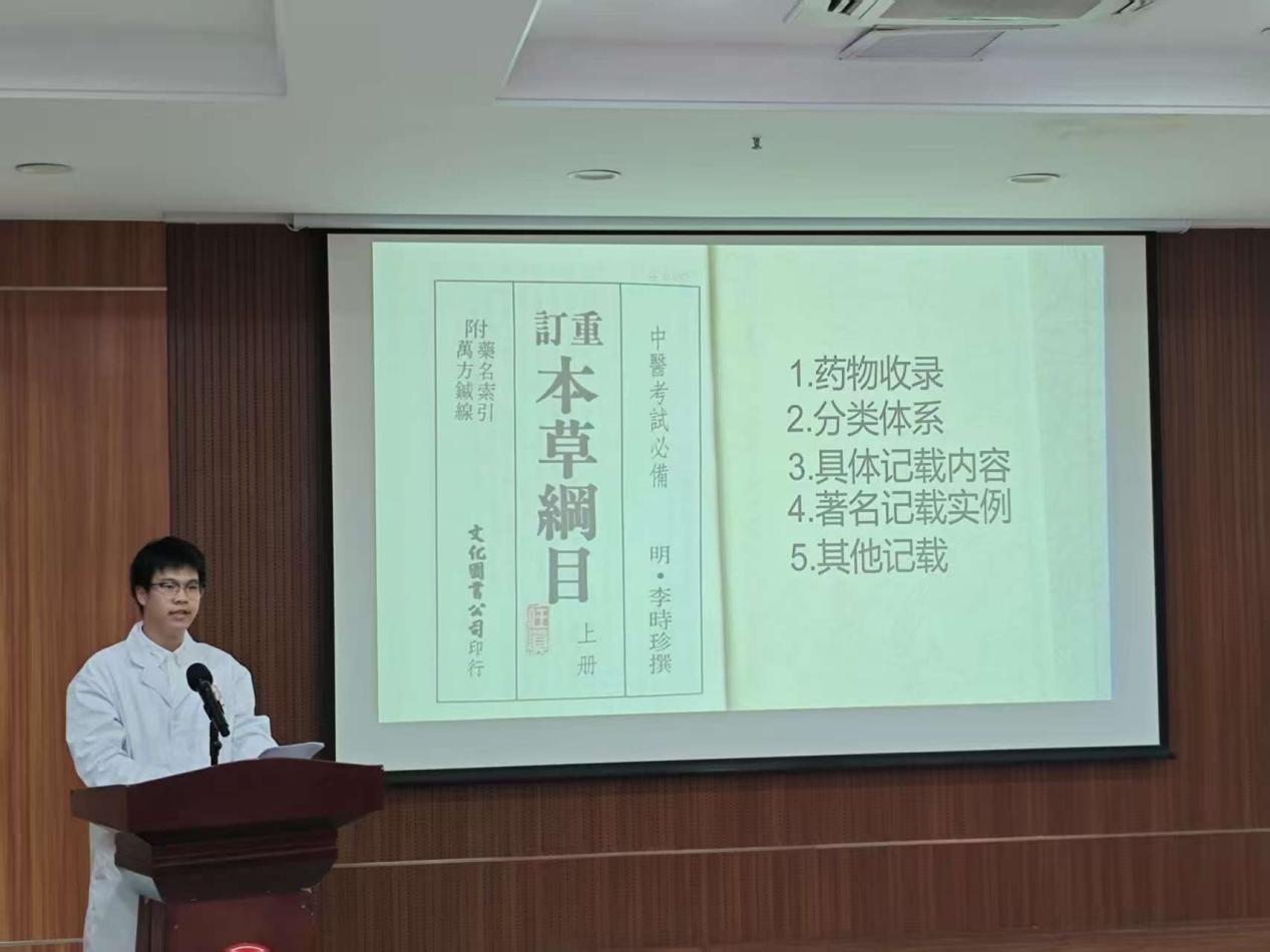 陶鹍宇同學帶來的《本草綱目》使中醫(yī)學子能更深入地了解中藥的世界,為今后的臨床用藥打下堅實的基礎。