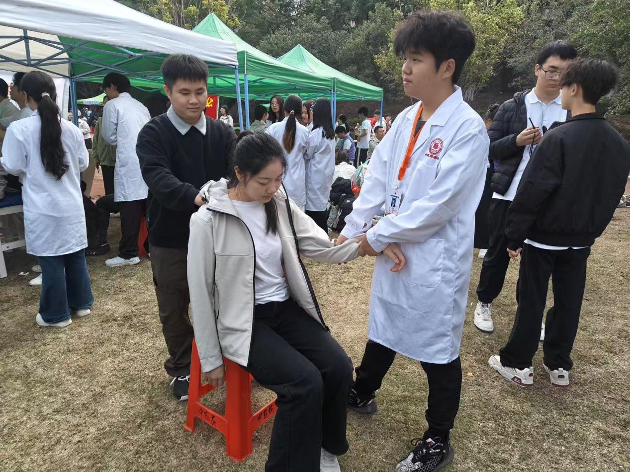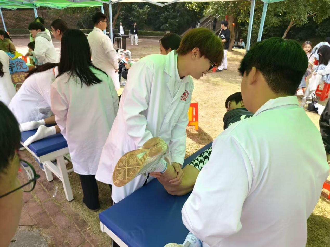 活動(dòng)現(xiàn)場(chǎng),師生團(tuán)隊(duì)化身“健康導(dǎo)師”,結(jié)合日常健康需求,現(xiàn)場(chǎng)演示推拿、針灸等中醫(yī)藥基礎(chǔ)理療手法。演示過(guò)程中,老師們細(xì)致講解人體常用穴位的定位、按摩力度操作要點(diǎn),通過(guò)“理論+實(shí)操”的方式,將專業(yè)的中醫(yī)藥知識(shí)轉(zhuǎn)化為通俗易懂的講解,手把手指導(dǎo)參與者上手體驗(yàn),耐心解答大家關(guān)于肩頸放松、運(yùn)動(dòng)后康復(fù)等常見(jiàn)問(wèn)題。此次互動(dòng)教學(xué)讓參與者直觀感受到中醫(yī)藥文化的獨(dú)特魅力與實(shí)用價(jià)值,不僅系統(tǒng)掌握了日常運(yùn)動(dòng)康復(fù)、肩頸舒緩的簡(jiǎn)易理療技巧,提升了自我健康管理能力,更在親身體驗(yàn)中加深了對(duì)傳統(tǒng)醫(yī)學(xué)的認(rèn)知與認(rèn)同,進(jìn)一步推動(dòng)了中華優(yōu)秀傳統(tǒng)醫(yī)學(xué)文化在校園的傳承與發(fā)展。