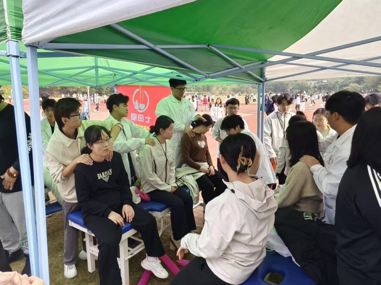 2025年12月10日至11日,學(xué)校第十四屆田徑運(yùn)動(dòng)會(huì)期間,中醫(yī)藥學(xué)院黨建小組聯(lián)合中醫(yī)藥協(xié)會(huì),以“健運(yùn)逐光,理療護(hù)航”為主題,在田徑場(chǎng)開(kāi)展暖心理療志愿服務(wù)活動(dòng)?;顒?dòng)兩天累計(jì)組織近100人次志愿者參與,依托專業(yè)中醫(yī)藥技術(shù)為校運(yùn)會(huì)參與者提供全方位理療支持,涵蓋運(yùn)動(dòng)員運(yùn)動(dòng)損傷應(yīng)急處理、疲勞緩解等內(nèi)容?,F(xiàn)場(chǎng)搭建一站式理療服務(wù)中心,由中醫(yī)藥專業(yè)師生團(tuán)隊(duì)分時(shí)段、分區(qū)域精準(zhǔn)服務(wù),既保障了賽事后勤,也為師生搭建了實(shí)踐平臺(tái),充分體現(xiàn)了學(xué)校對(duì)師生健康的高度重視與人文關(guān)懷。
