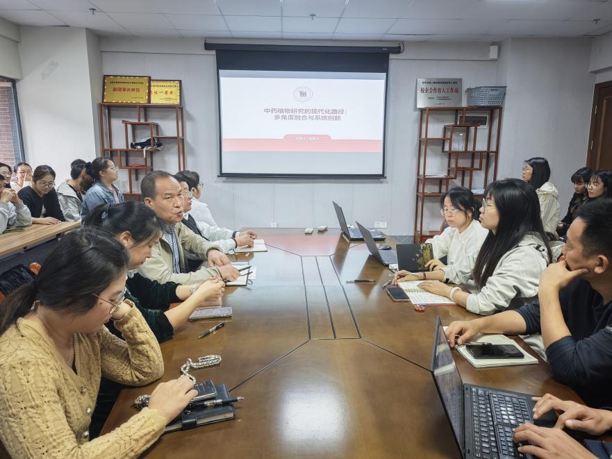 2025年12月19日,阮效先博士給全院教師做了一場主題為“中藥植物研究的現(xiàn)代化路徑:多角度融合與系統(tǒng)創(chuàng)新”的學術報告。