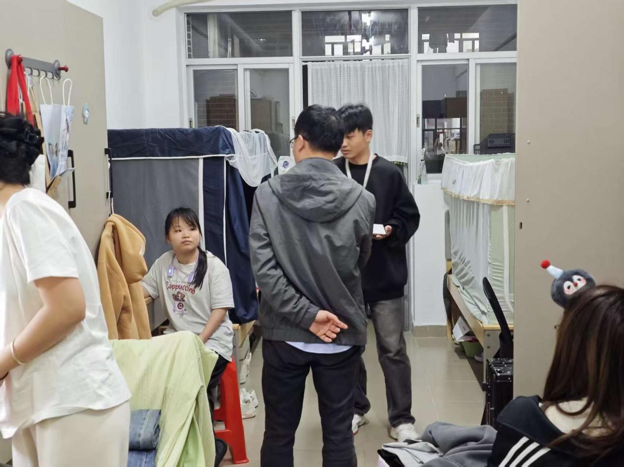 走訪過程中,院領(lǐng)導(dǎo)與返校學(xué)生親切交流,細致詢問大家的假期生活、返程旅途情況,認真傾聽同學(xué)們在住宿、學(xué)習(xí)、生活等方面的意見和建議,叮囑同學(xué)們盡快調(diào)整作息、收心歸位,以飽滿的精神狀態(tài)投入到新學(xué)期的學(xué)習(xí)生活中。同時,重點檢查宿舍衛(wèi)生、水電安全、消防設(shè)施等情況,提醒同學(xué)們增強安全防范意識,嚴格遵守宿舍管理規(guī)定,共同維護整潔文明的居住環(huán)境,互幫互助、和睦相處。