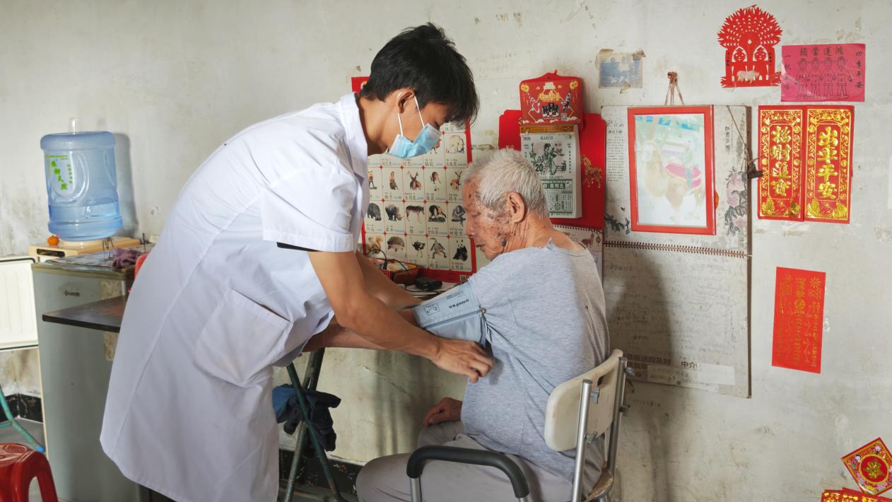 志愿者進入到居民家中為其測量血壓