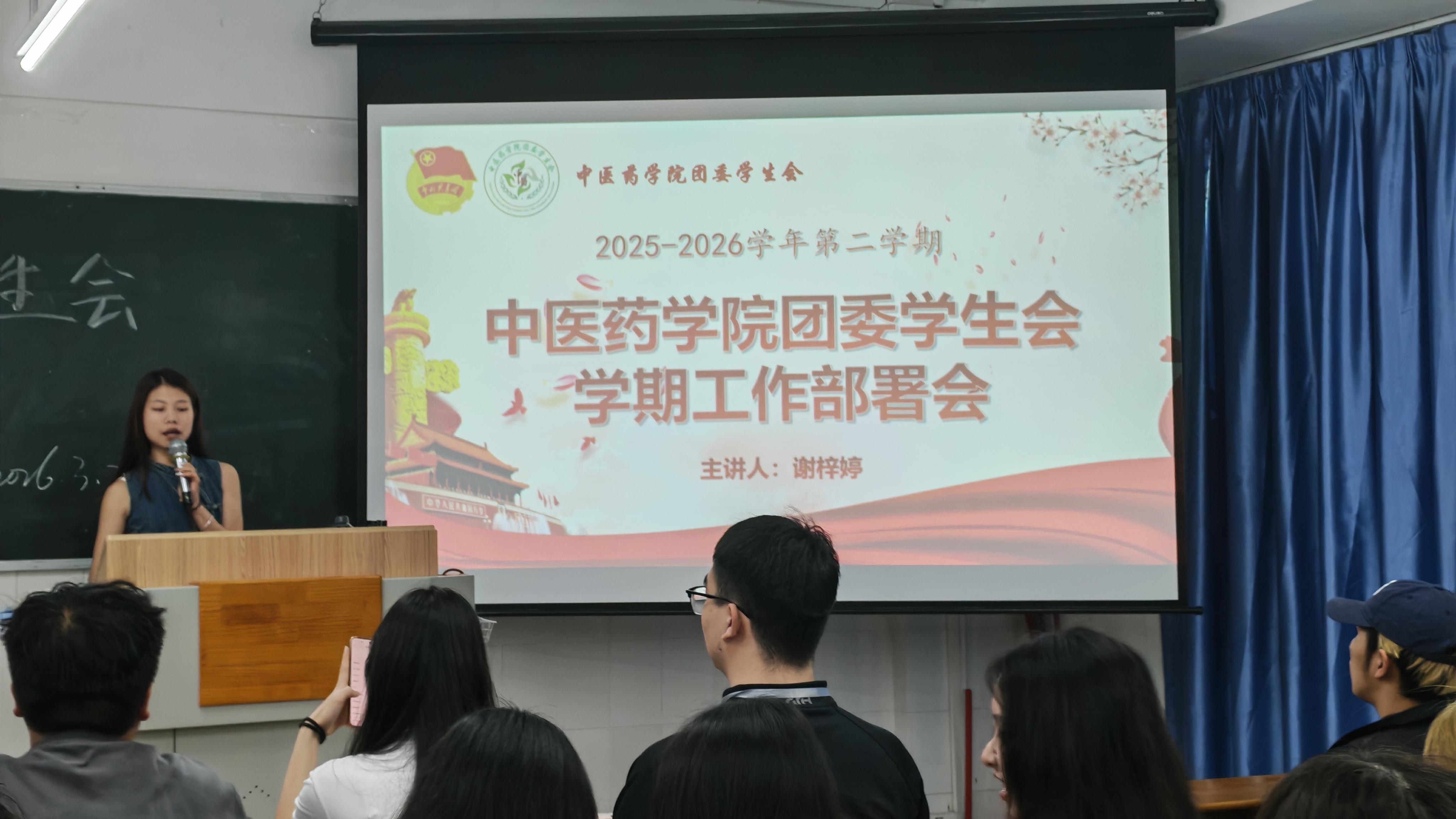 2026年3月24日,中醫(yī)藥學(xué)院團(tuán)委學(xué)生會(huì)學(xué)期工作部署會(huì)在西二201教室順利召開。本次會(huì)議主要講解干事留部競(jìng)選、干部學(xué)期工作例會(huì)兩大核心議題,進(jìn)一步明確工作要求,強(qiáng)化干部隊(duì)伍紀(jì)律意識(shí)與服務(wù)初心,為學(xué)院團(tuán)學(xué)工作高質(zhì)量發(fā)展奠定基礎(chǔ)。中醫(yī)藥學(xué)院團(tuán)委書記謝梓婷老師出席會(huì)議并講話,全體學(xué)生會(huì)成員參會(huì)。