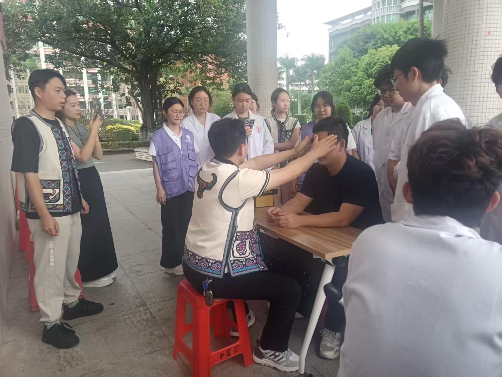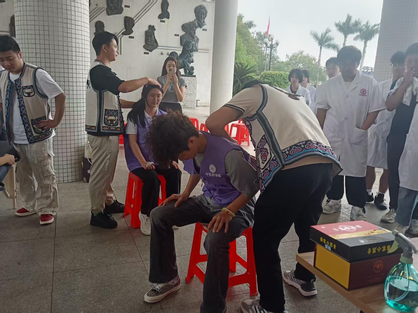 中醫(yī)藥學(xué)院的學(xué)生志愿者們?nèi)虆f(xié)助開(kāi)展義診服務(wù),近距離觀摩學(xué)習(xí)非遺技藝的實(shí)操流程,在實(shí)踐中感受傳統(tǒng)醫(yī)藥的實(shí)操魅力,將理論知識(shí)與臨床實(shí)踐相結(jié)合,進(jìn)一步夯實(shí)專業(yè)基礎(chǔ),提升實(shí)操能力與服務(wù)意識(shí)。