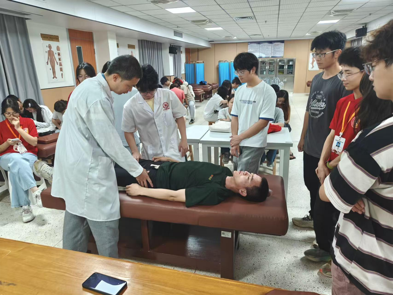 為增強(qiáng)學(xué)習(xí)效果,講座特別設(shè)置了互動(dòng)實(shí)操環(huán)節(jié)。在潘菽弢博士的專業(yè)指導(dǎo)下,同學(xué)們分組展開練習(xí),輪流擔(dān)任操作者與體驗(yàn)者,在互助切磋中交流手法心得、修正操作偏差。現(xiàn)場(chǎng)學(xué)習(xí)氣氛濃厚,同學(xué)們積極提問、反復(fù)練習(xí),真正實(shí)現(xiàn)了“教中學(xué)、學(xué)中教”的雙向成長(zhǎng)。