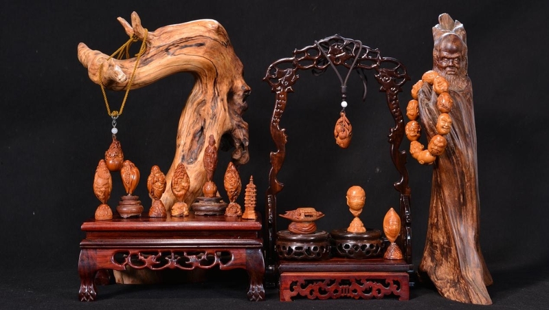 廣州欖雕是增城唯一一項國家級非遺項目,起源于明末清初,至今已有300多年歷史。它是以烏欖核為原材料的立體微型雕刻工藝,欖雕作品細致精微,小中見大,具有很高的藝術價值。
