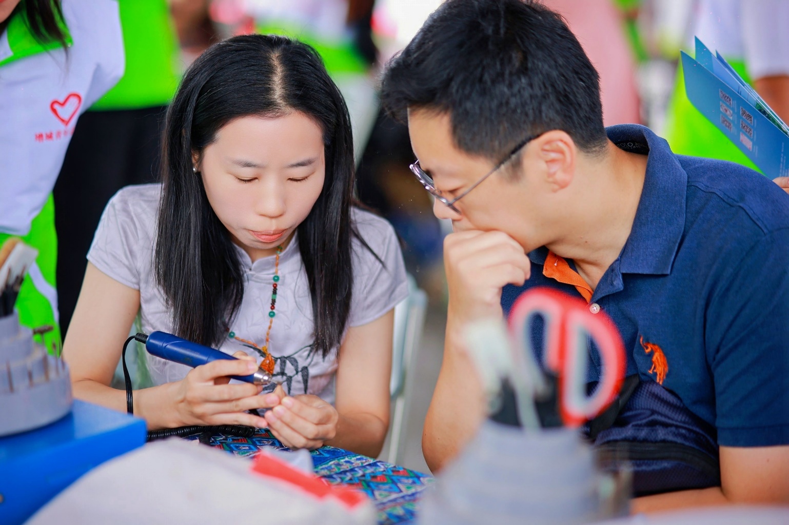 在互動體驗環(huán)節(jié)中,這些新一代“非遺傳承人”們變身小老師分組進行演示,并熱情邀請現(xiàn)場的觀眾走進課堂,親身參與“欖雕”制作?,F(xiàn)場氣氛熱烈,這一刻,我們感受到傳承的力量。