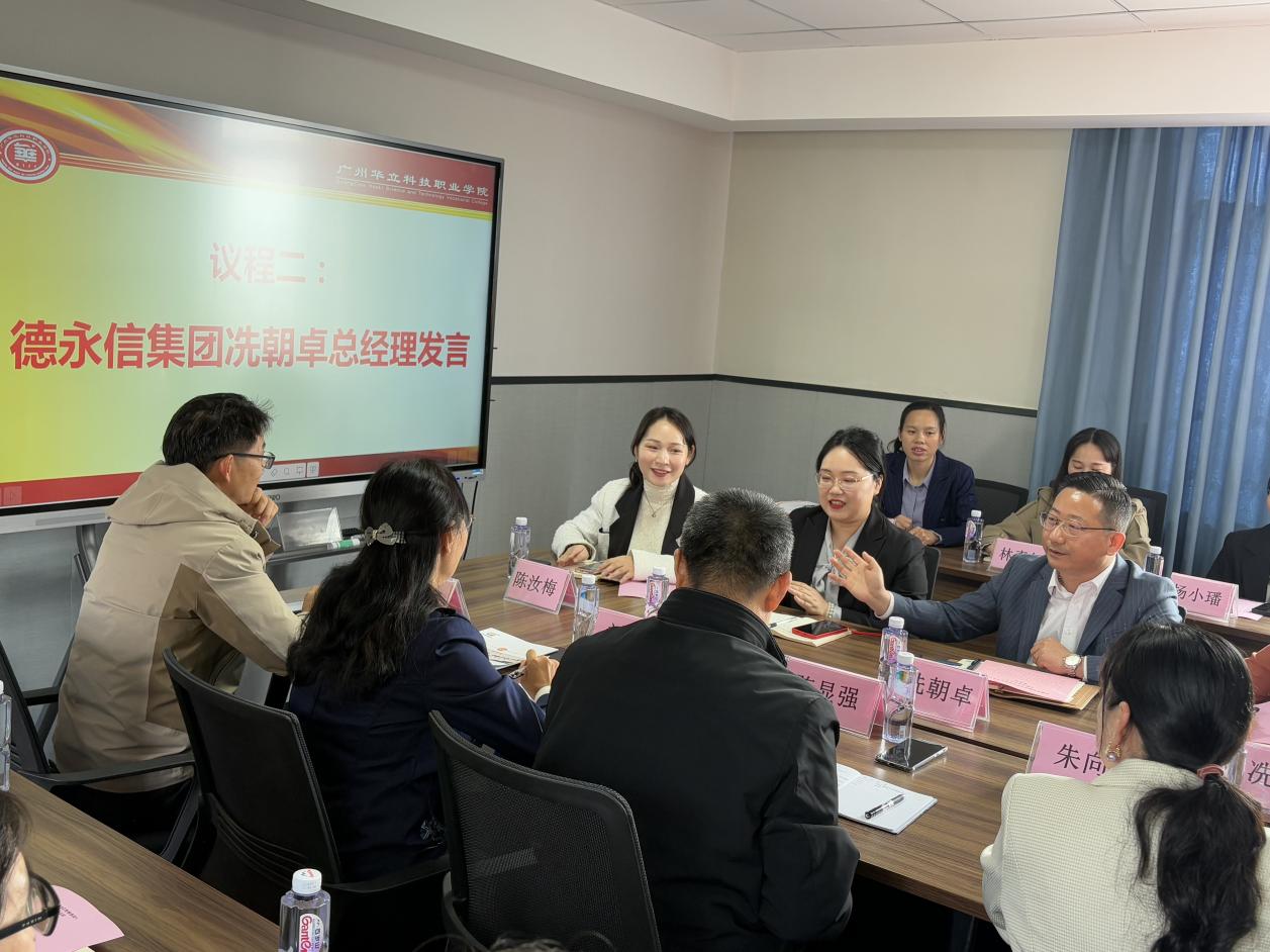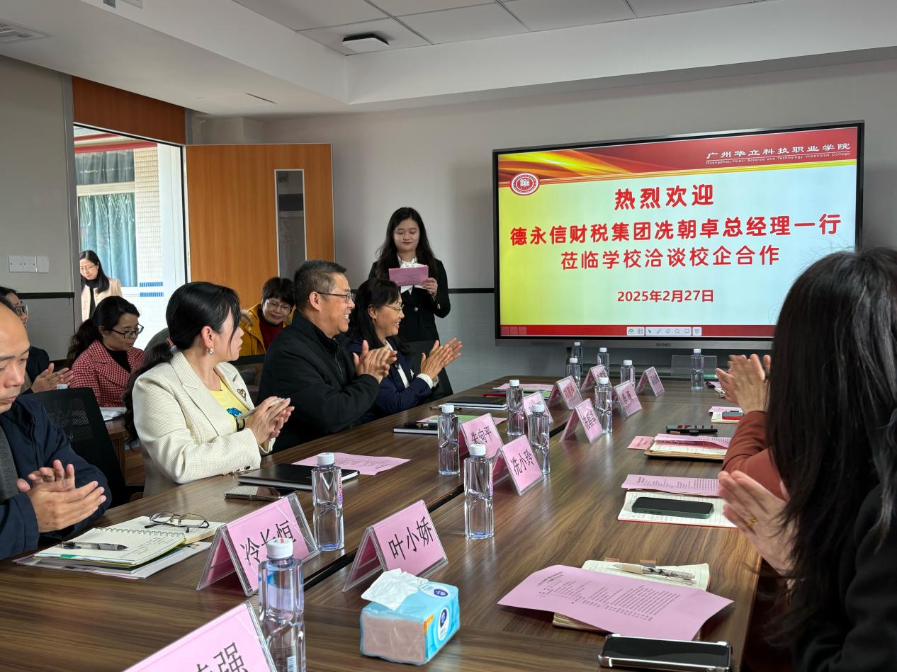 2025年2月27日,深圳市德永信財稅集團有限公司總經(jīng)理冼朝卓先生率領(lǐng)集團下各子公司高管們一行蒞臨廣州華立科技職業(yè)學(xué)院經(jīng)濟管理學(xué)院參加“共育匠才 ‘職’ 通未來” 產(chǎn)教融合洽談會。學(xué)校副校長陳顯強教授親臨會場,陪同參會的還有教務(wù)處處長王澤秀及產(chǎn)教融合辦韋建林主任。
