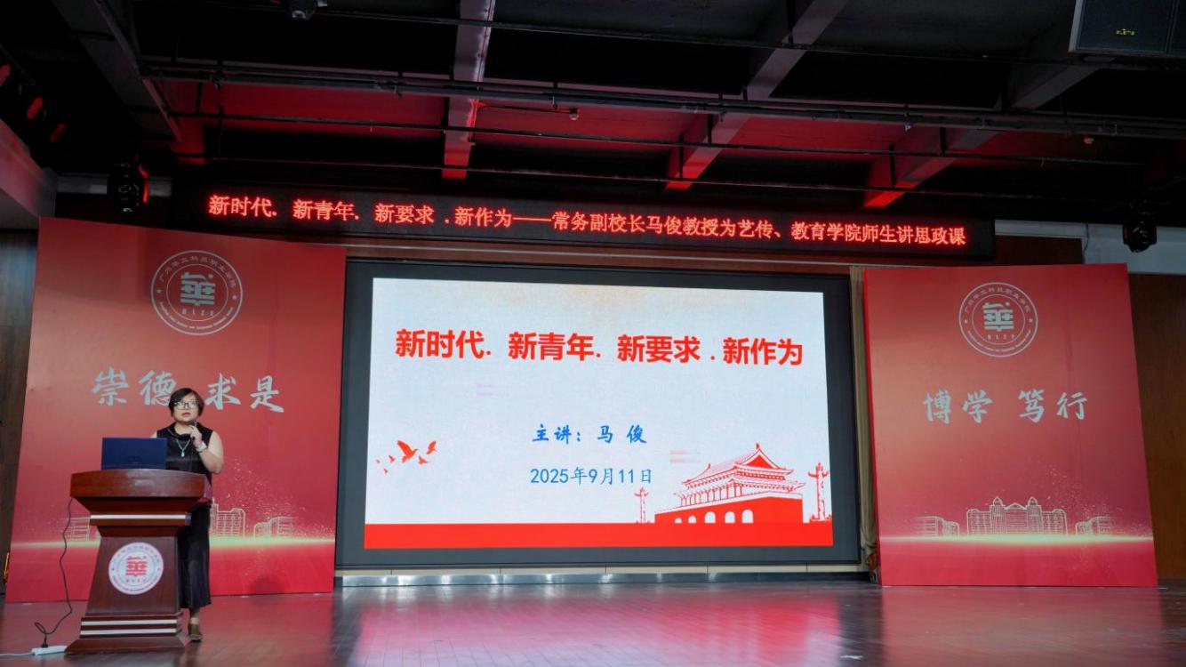 秋意漸濃啟新程,思想領(lǐng)航聚力量。 9 月 11 日晚 6 點,學(xué)校常務(wù)副校長馬俊教授以“新時代、新青年、新要求、新作為”為主題,在圖書館八樓報告廳為藝術(shù)與傳媒學(xué)院、教育學(xué)院的700名師生代表們講授了“思政第一課”。馬俊教授用深刻的理論闡釋、鮮活的實踐案例,為在場師生打造了一堂兼具思想深度與情感溫度的思政課。