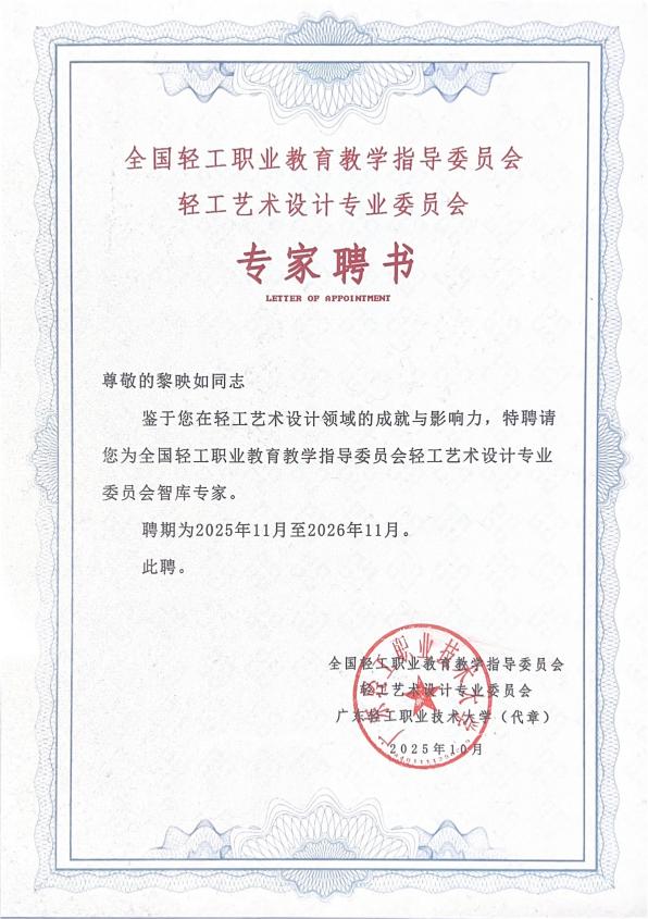 受聘“全國輕工藝術(shù)設(shè)計(jì)專委會(huì)智庫專家”