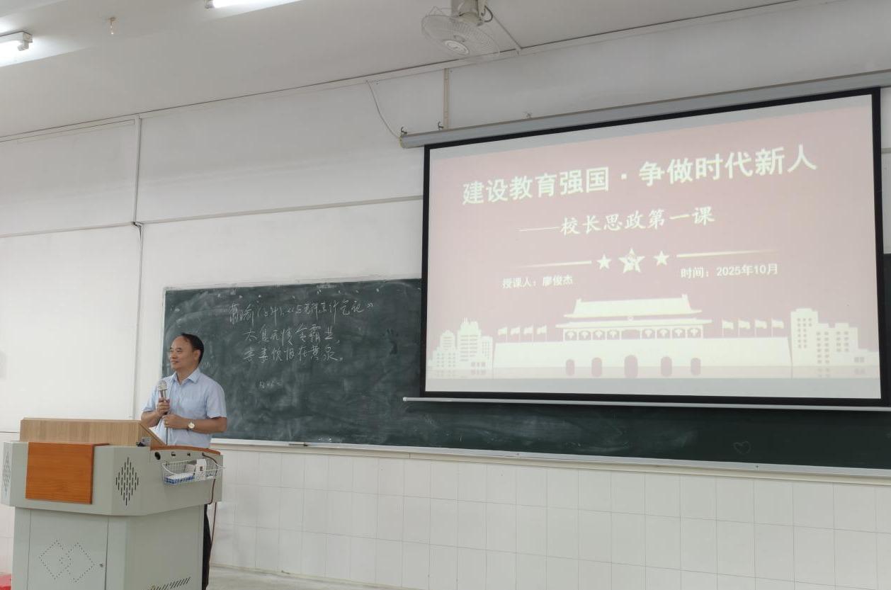 11月7日下午,我校黨委副書記、校長廖俊杰教授在圖書館501室給電力與智能制造學(xué)院學(xué)生開講以“建設(shè)教育強國·爭做時代新人”為主題的思政第一課。課程以貫徹黨的二十大、二十屆三中、四中全會精神為主線,結(jié)合我國教育發(fā)展歷程與職業(yè)教育實踐,引導(dǎo)學(xué)生厚植家國情懷,立志成為新時代的棟梁之才。