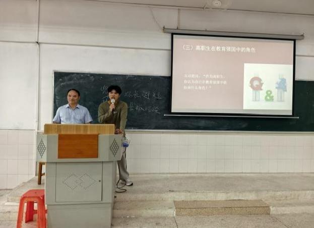 廖校長在最后總結(jié)時寄語,職業(yè)教育現(xiàn)代化是教育現(xiàn)代化的重要基石,高職青年應(yīng)秉持精益求精的工匠精神和愛崗敬業(yè)的職業(yè)態(tài)度,在實現(xiàn)中國式現(xiàn)代化征程中貢獻“職教力量”。