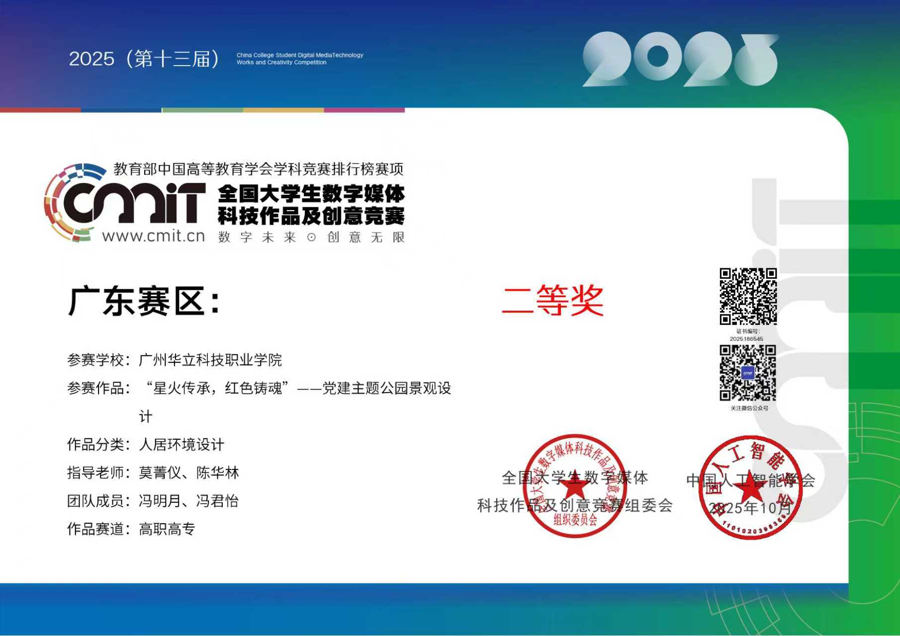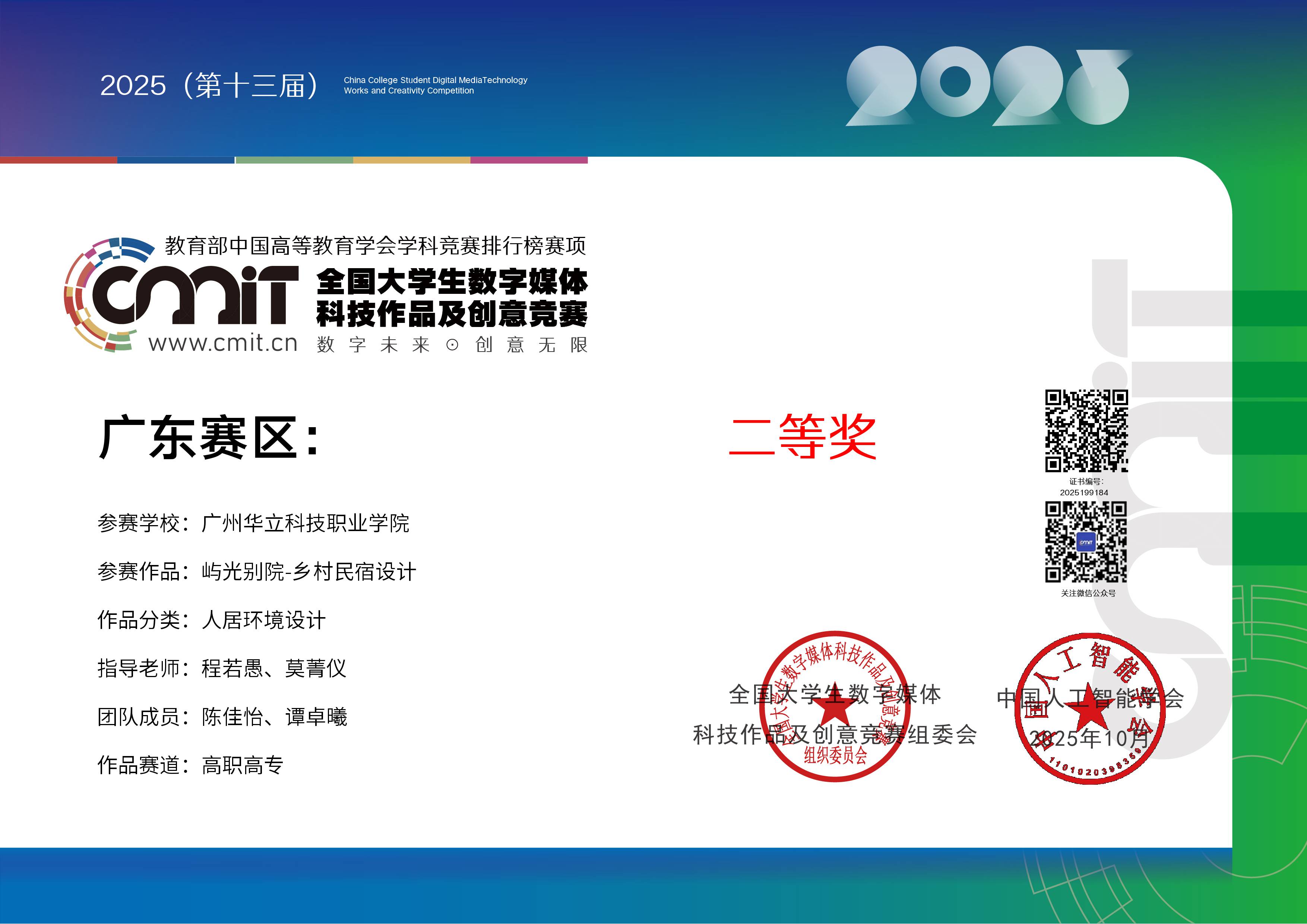 近日,備受全國(guó)高校關(guān)注的第 13 屆全國(guó)大學(xué)生數(shù)字媒體科技作品及創(chuàng)意競(jìng)賽圓滿落幕。城建學(xué)院師生憑借扎實(shí)的專業(yè)功底、創(chuàng)新的設(shè)計(jì)理念與出色的實(shí)踐能力,在全國(guó)眾多參賽隊(duì)伍中脫穎而出,最終斬獲全國(guó)總決賽三等獎(jiǎng)2項(xiàng),廣東省賽區(qū)二等獎(jiǎng)2項(xiàng)及三等獎(jiǎng)2項(xiàng)的優(yōu)異成績(jī),充分展現(xiàn)了學(xué)院在數(shù)字媒體教育領(lǐng)域的育人成果與學(xué)科實(shí)力。本次大賽是由全國(guó)大學(xué)生數(shù)字媒體科技作品及創(chuàng)意競(jìng)賽組委會(huì)主辦,旨在搭建高校數(shù)字媒體專業(yè)師生交流學(xué)習(xí)的平臺(tái),激發(fā)大學(xué)生的創(chuàng)新思維與科技創(chuàng)造力,推動(dòng)數(shù)字媒體技術(shù)與創(chuàng)意設(shè)計(jì)在各行業(yè)的融合應(yīng)用。大賽已連續(xù)舉辦13屆,是為藝術(shù)設(shè)計(jì)領(lǐng)域的高水平知名賽事,也是我院師生積極參與的重要專業(yè)競(jìng)賽之一。