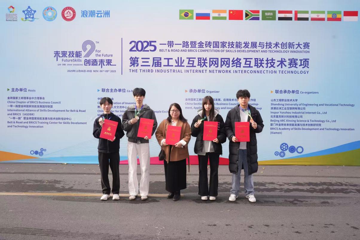 喜報:我院學(xué)子在2025“一帶一路暨金磚國家技能發(fā)展與技術(shù)創(chuàng)新大賽”工業(yè)互聯(lián)網(wǎng)網(wǎng)絡(luò)互聯(lián)賽項全國總決賽中榮獲二等獎、三等獎各1項