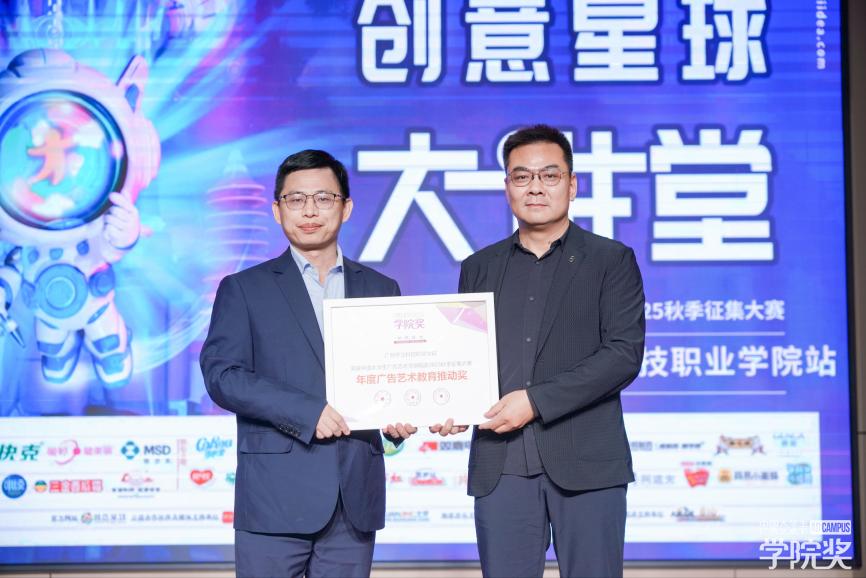 廣告人學(xué)院執(zhí)行院長(zhǎng)、大廣節(jié)學(xué)院獎(jiǎng)產(chǎn)教融合委員會(huì)主任高鵬銘為廣州華立科技職業(yè)學(xué)院頒發(fā)“中國(guó)大學(xué)生廣告藝術(shù)節(jié)學(xué)院獎(jiǎng)2025秋季征集大賽·廣告教育推動(dòng)獎(jiǎng)”證書,廣州華立科技職業(yè)學(xué)院校長(zhǎng)助理李鵬代表學(xué)院上臺(tái)領(lǐng)獎(jiǎng)。這一獎(jiǎng)項(xiàng)既是對(duì)學(xué)院長(zhǎng)期深耕創(chuàng)意教育、推動(dòng)廣告教學(xué)與行業(yè)實(shí)踐深度融合的認(rèn)可,更為院校與學(xué)院獎(jiǎng)攜手賦能青年創(chuàng)意成長(zhǎng)進(jìn)一步夯實(shí)了合作基礎(chǔ)。