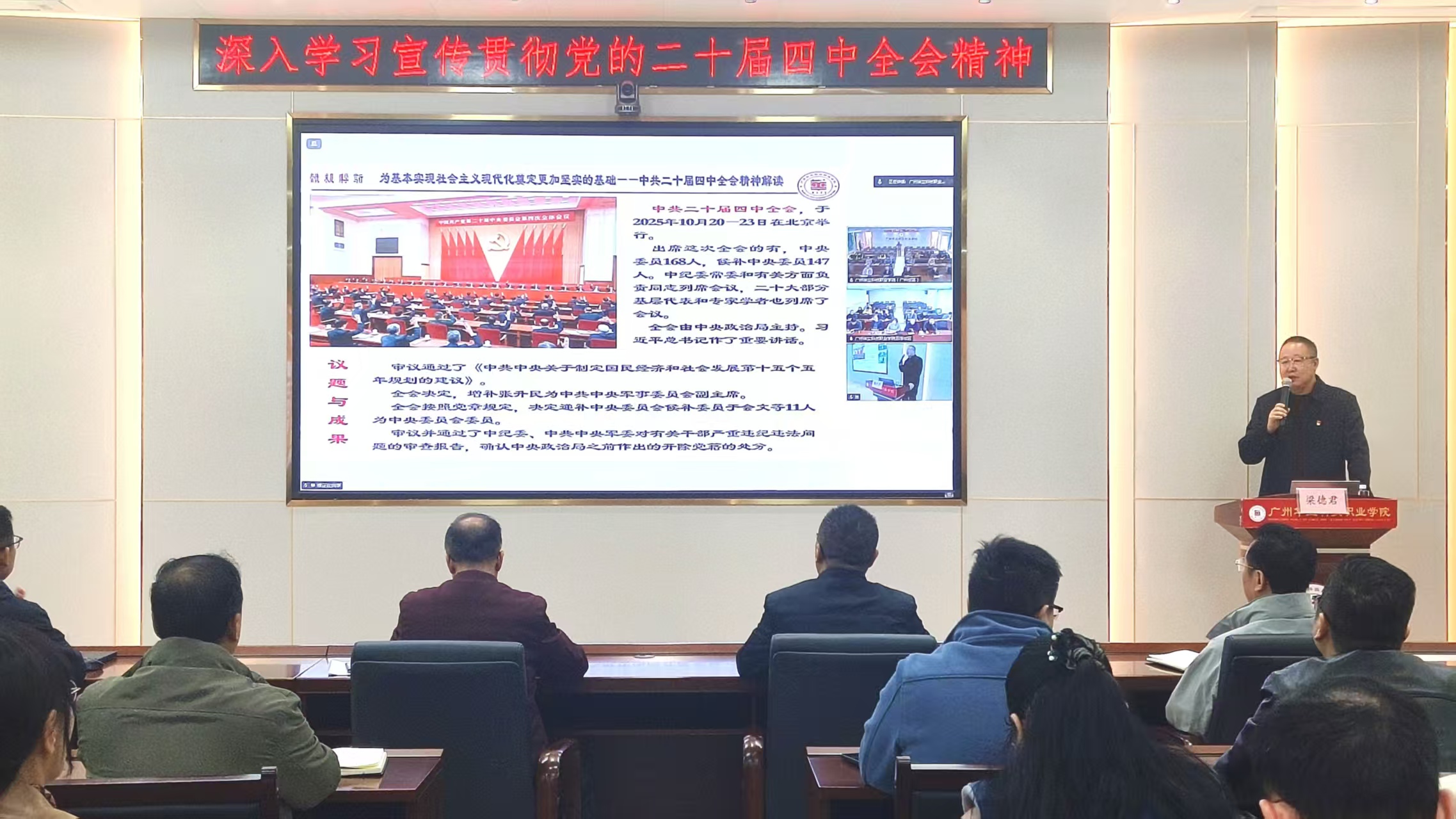 陳良聲書記傳達(dá)了《中共廣東省委教育工委關(guān)于開展黨的二十屆四中全會(huì)精神“六個(gè)一百”宣講行動(dòng)的通知》精神,介紹了《中共廣州華立科技職業(yè)學(xué)院委員會(huì)組織開展黨的二十屆四中全會(huì)精神宣講行動(dòng)實(shí)施方案》,從學(xué)校黨委書記和校長、二級(jí)學(xué)院黨組織書記和院長、黨委宣傳部部長、黨委學(xué)生工作部部長、思政課教師、輔導(dǎo)員等七個(gè)層面,對我校深入開展黨的二十屆四中全會(huì)精神宣講工作進(jìn)行全面部署,并提出了明確要求。陳良聲書記強(qiáng)調(diào),學(xué)校各級(jí)領(lǐng)導(dǎo)、各部門、各二級(jí)學(xué)院要將學(xué)習(xí)宣傳貫徹黨的二十屆四中全會(huì)精神作為當(dāng)前和今后一個(gè)時(shí)期的重大政治任務(wù)抓緊抓實(shí),將廣大師生的思想統(tǒng)一到黨中央的決策部署上來,推動(dòng)黨的二十屆四中全會(huì)精神在我校落地生根、結(jié)出碩果。