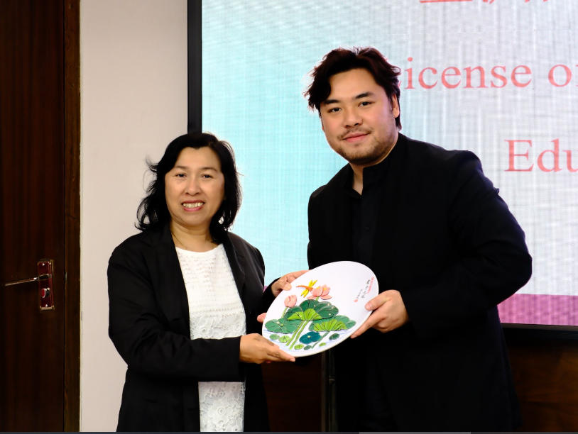 隨后,在與會人員的共同見證下,亞洲國際教育聯(lián)盟秘書長楊華昕授予我校“亞洲國際教育聯(lián)盟會員單位”,校長廖俊杰代表我校領取授牌。此次授牌不僅是對我校國際化辦學成果的認可,更是學校持續(xù)推進開放合作、積極融入全球職業(yè)教育體系的重要體現(xiàn)。儀式后,雙方互贈了精心準備的禮物。禮物不僅承載著各自的文化特色與美好祝愿,更是友誼與合作的象征,為此次訪問留下了難忘的紀念。