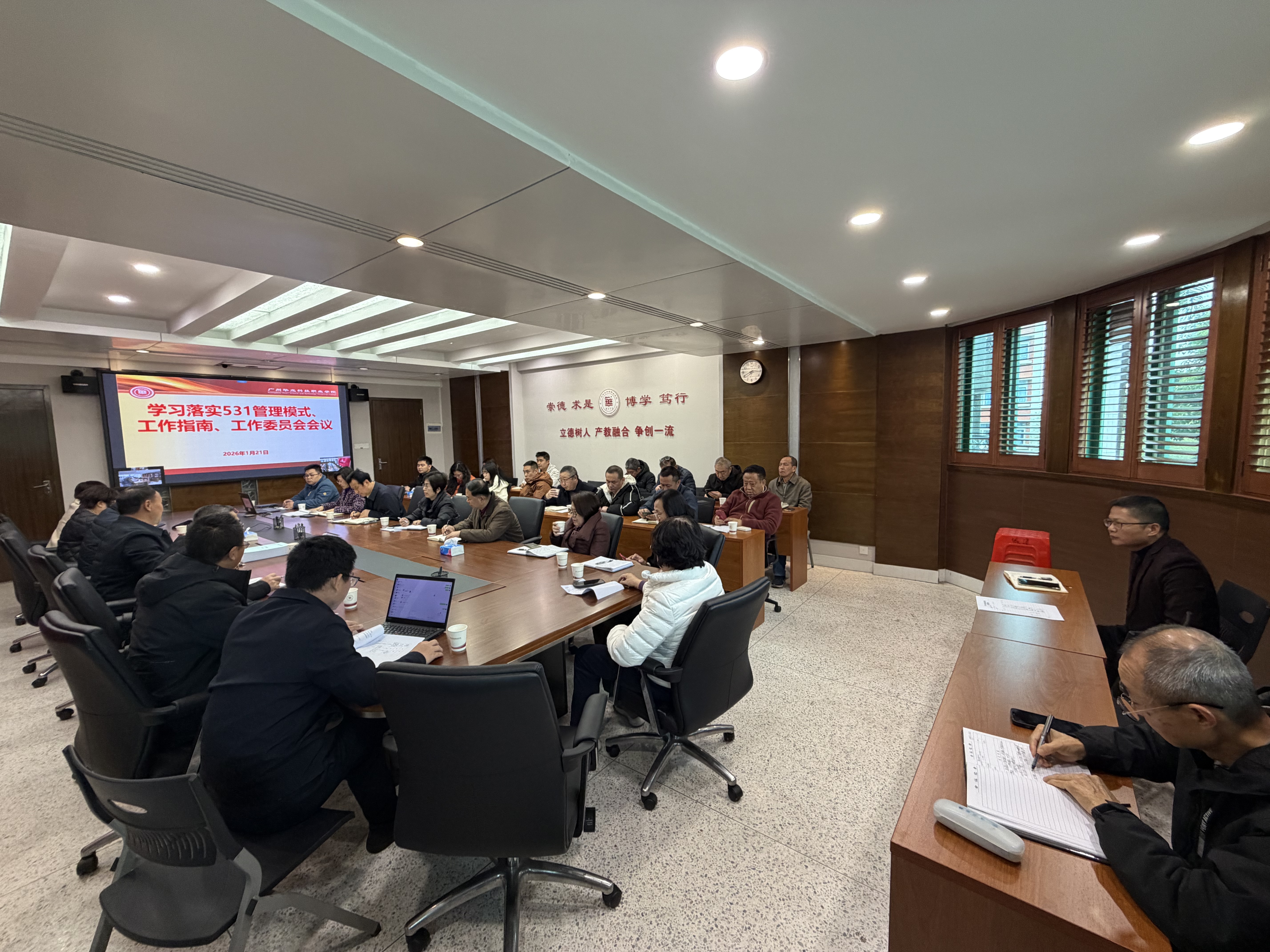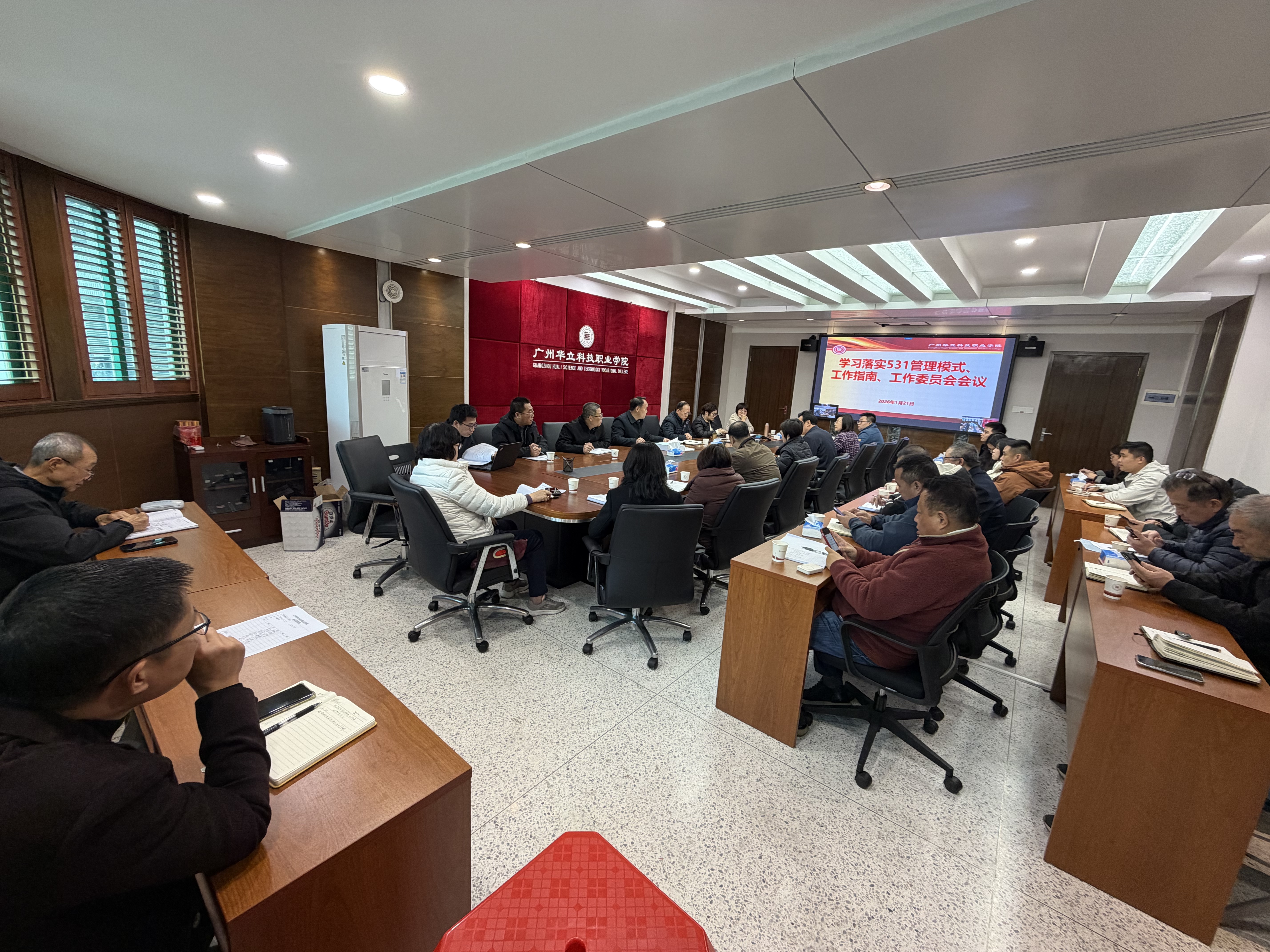 為錨定學(xué)校長遠(yuǎn)發(fā)展目標(biāo),夯實(shí)規(guī)范化管理根基,2026年1月21日,廣州華立科技職業(yè)學(xué)院召開學(xué)習(xí)落實(shí)“531”工作計(jì)劃專題會(huì)議,全體校領(lǐng)導(dǎo)、職能部門負(fù)責(zé)人及二級學(xué)院院長齊聚行政樓305會(huì)議室,云浮校區(qū)同步視頻連線,共同學(xué)習(xí)“531”管理模式核心要義,部署相關(guān)工作推進(jìn)事宜。會(huì)議由廖俊杰校長主持。