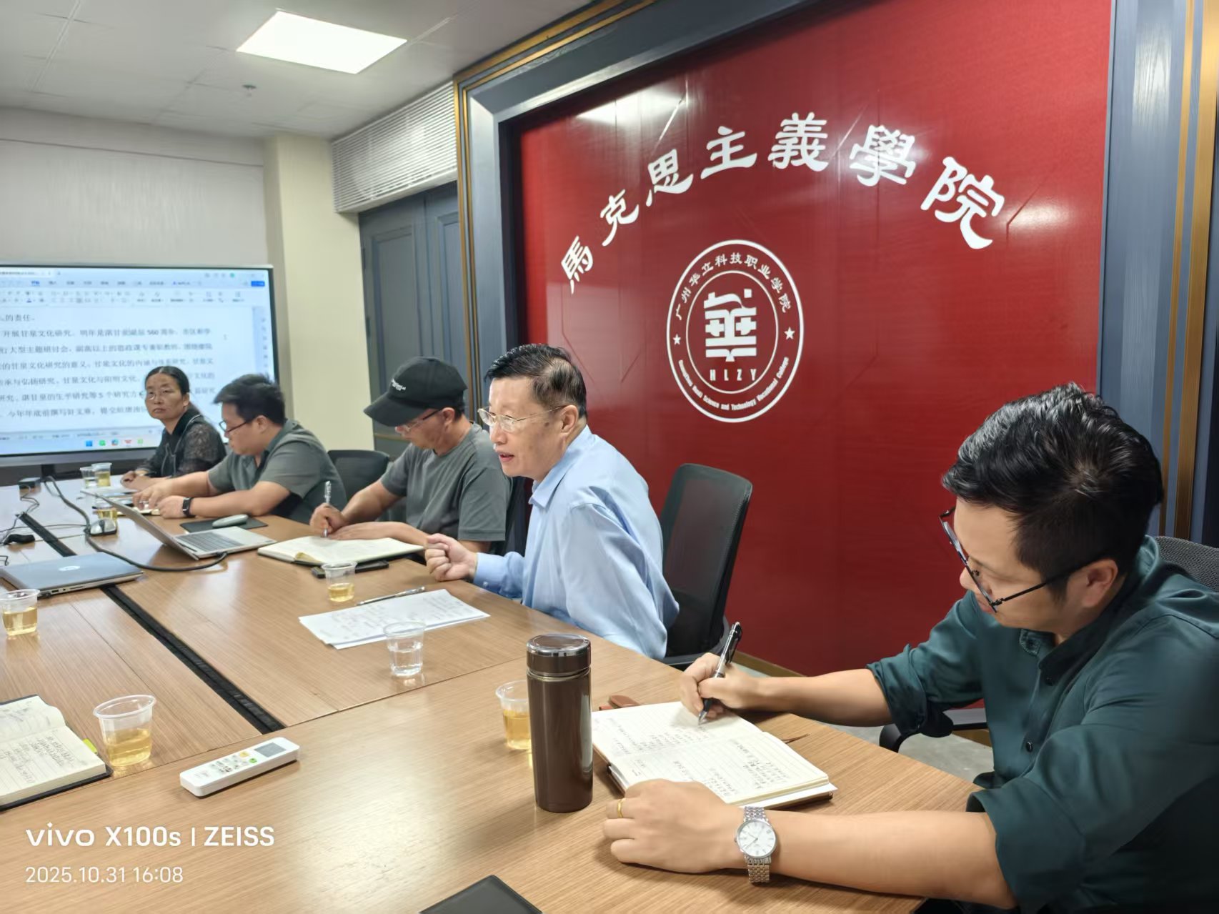 為全面貫徹落實教育部辦公廳《關于開展2025-2026學年高校思政課課堂教學提升行動的通知》精神,堅持不懈用習近平新時代中國特色社會主義思想鑄魂育人,增強全體思政課教師的責任感和敬業(yè)精神,提高課堂教學質量,10月31日馬克思主義學院在G1-314會議室召開思政課評建工作座談會。廖良初院長主持會議,學校人事處處長鐘文浩、教務處副處長曾英姿、教學督導辦公室主任王焰安、藝傳學院院長朱君及全體思政課教師參加座談會。