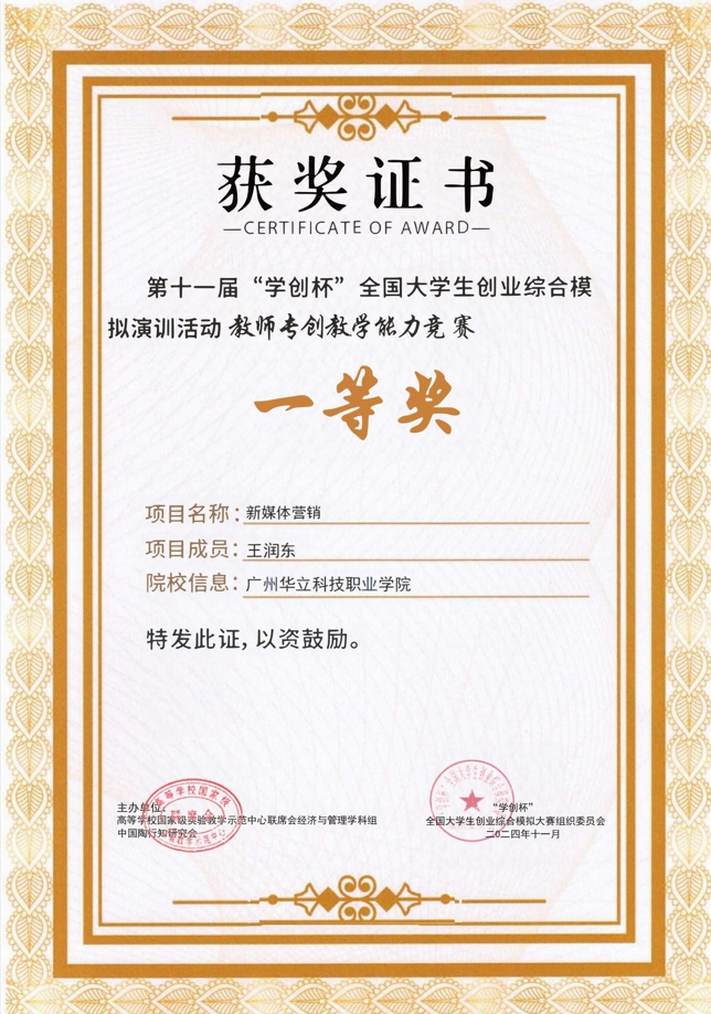 2024年“學(xué)創(chuàng)杯”全國大學(xué)生創(chuàng)業(yè)綜合模擬演訓(xùn)活動(dòng)教師專創(chuàng)教學(xué)能力競賽 (一等獎(jiǎng))