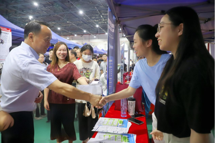 校長廖俊杰、黨委書記陳良聲、副校長陳顯強(qiáng)、校長助理葉春桃等領(lǐng)導(dǎo)親臨招聘會現(xiàn)場,實地調(diào)研企業(yè)的招聘需求與學(xué)生求職情況以鞏固前期學(xué)校訪企拓崗的成果,充分體現(xiàn)了學(xué)校對畢業(yè)生就業(yè)工作的高度關(guān)注與支持。