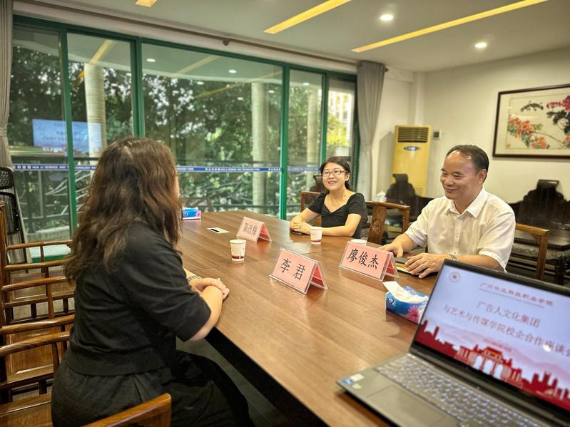 2025年9月16日,廣告人文化集團(tuán)(天津)有限公司總裁辦公室主任李君一行到訪廣州華立科技職業(yè)學(xué)院,與校方就深化校企合作、推動(dòng)產(chǎn)教融合展開座談交流。廣州華立科技職業(yè)學(xué)院校長廖俊杰、藝術(shù)與傳媒學(xué)院黨總支書記陳改梅等出席本次會(huì)議。