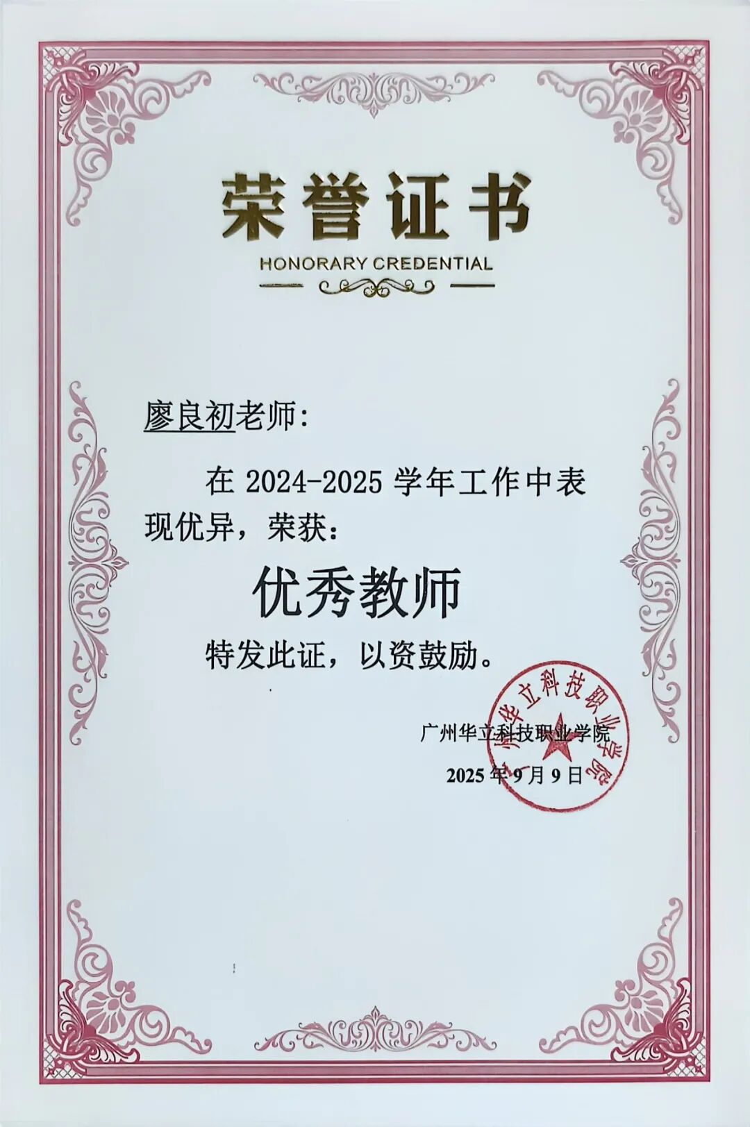 廖俊杰校長(zhǎng)向教師代表致以節(jié)日問(wèn)候。他指出,教育是民族振興和社會(huì)進(jìn)步的基石。建校26年來(lái),廣大教師始終堅(jiān)守為黨育人、為國(guó)育才的初心使命,扎根講壇、潛心育人,以“一生只為一件事”的執(zhí)著專注,展現(xiàn)了新時(shí)代教師的高尚師德與責(zé)任擔(dān)當(dāng),培養(yǎng)了大批行業(yè)精英,為教育事業(yè)和經(jīng)濟(jì)社會(huì)發(fā)展作出重要貢獻(xiàn)。學(xué)校將持續(xù)把教師隊(duì)伍建設(shè)作為重點(diǎn)任務(wù),弘揚(yáng)教育家精神,完善體制機(jī)制,深化教師人事制度改革,加快建設(shè)高素質(zhì)專業(yè)化教師隊(duì)伍,為學(xué)校高質(zhì)量發(fā)展匯聚力量。他強(qiáng)調(diào),要對(duì)教職工的辛勤付出予以充分肯定,并對(duì)突出貢獻(xiàn)者給予重獎(jiǎng),尤其加大重大成果獎(jiǎng)勵(lì)力度。希望全體教師牢記育人使命,做人民滿意的教師,辦人民滿意的教育,以更高質(zhì)量的教育服務(wù)社會(huì),共同書寫教育發(fā)展新篇章。